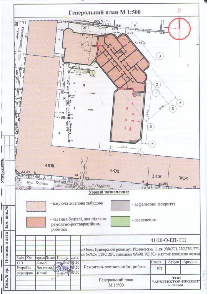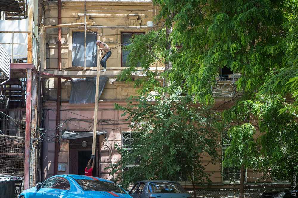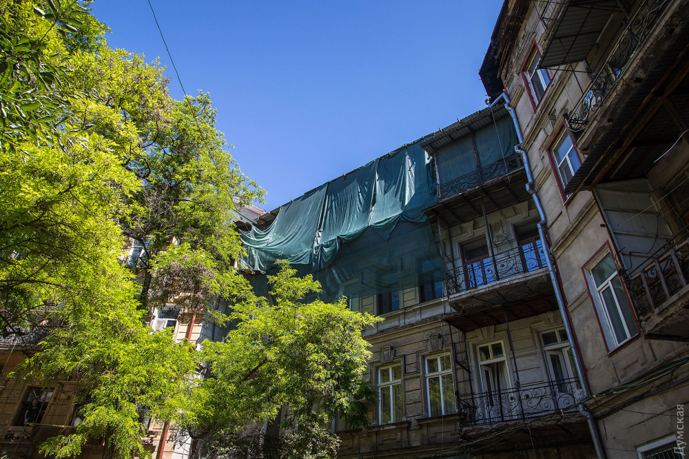 Ремонтно-реставрационные и строительные работы ведутся в доме №11 по Ришельевской (угол Бунина), горевшем в феврале прошлого года.