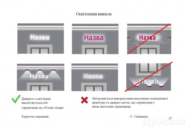 Кроме того, в документе, вопреки позиции общественности, ополовинили раздел «Освещение вывесок». В частности, авторы исключили запрет на использование в качестве вывесок больших световых табло, бегущих строк и пульсирующего изображения. Можно только догадываться, в чьих интересах это было сделано.