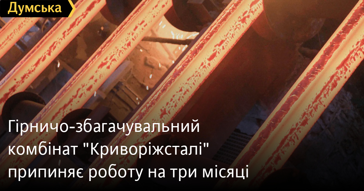 Найбільше гірничо-металургійне підприємство України «АрселорМіттал Кривий Ріг» призупинить роботу гірничо-збагачувального комбінату на три місяці з 1 серпня.