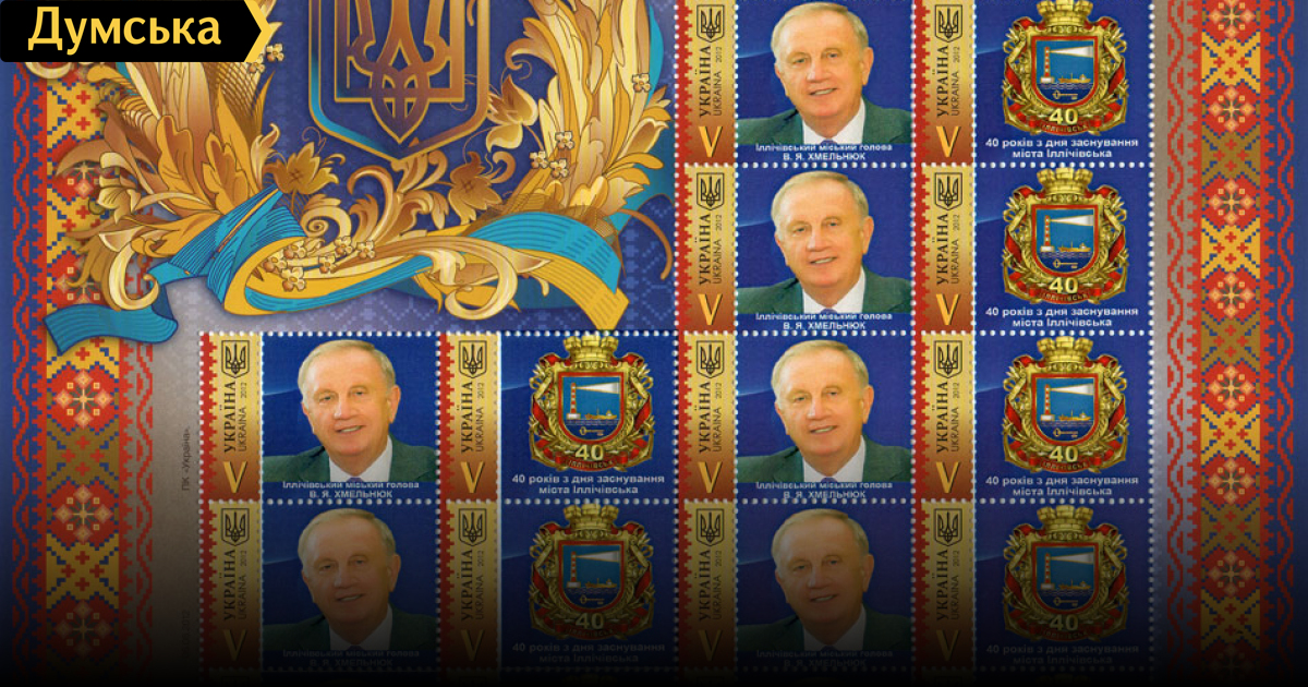«Укрпочта» считает самым заслуженным жителем Ильичевска за все время существования этого портового и промышленного города действующего мэра. Так, к 40-летию со дня основания населенного пункта (отмечалось 12 апреля) государственное предприятие выпустило юбилейные марки, на одной из которых изображен герб Города Ильича, а на другой – Валерий Хмельнюк, бессменный руководитель Ильичевска с 1994-го года (до этого он был нардепом, а еще раньше возглавлял одесский горком КПУ).