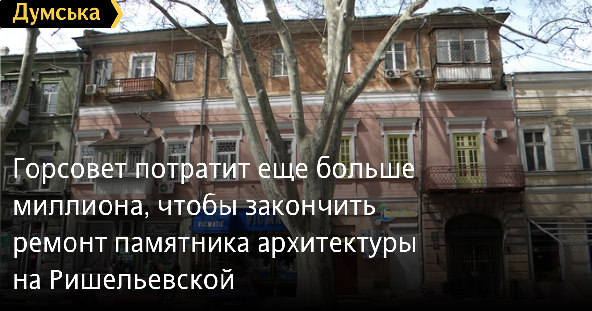 Управление капитального строительства Одесского горсовета намерено потратить еще 1 млн 278 тыс. грн на реставрацию памятника архитектуры — дома Дмитриева на ул. Ришельевской, 38.