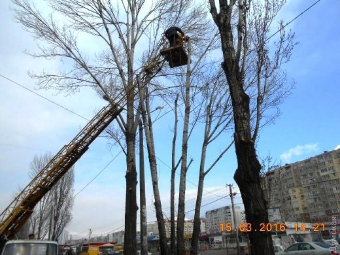 15 марта сотрудники приступили к обрезке тополей, растущих вдоль Днепропетровской дороги. Всего укоротят 62 дерева.