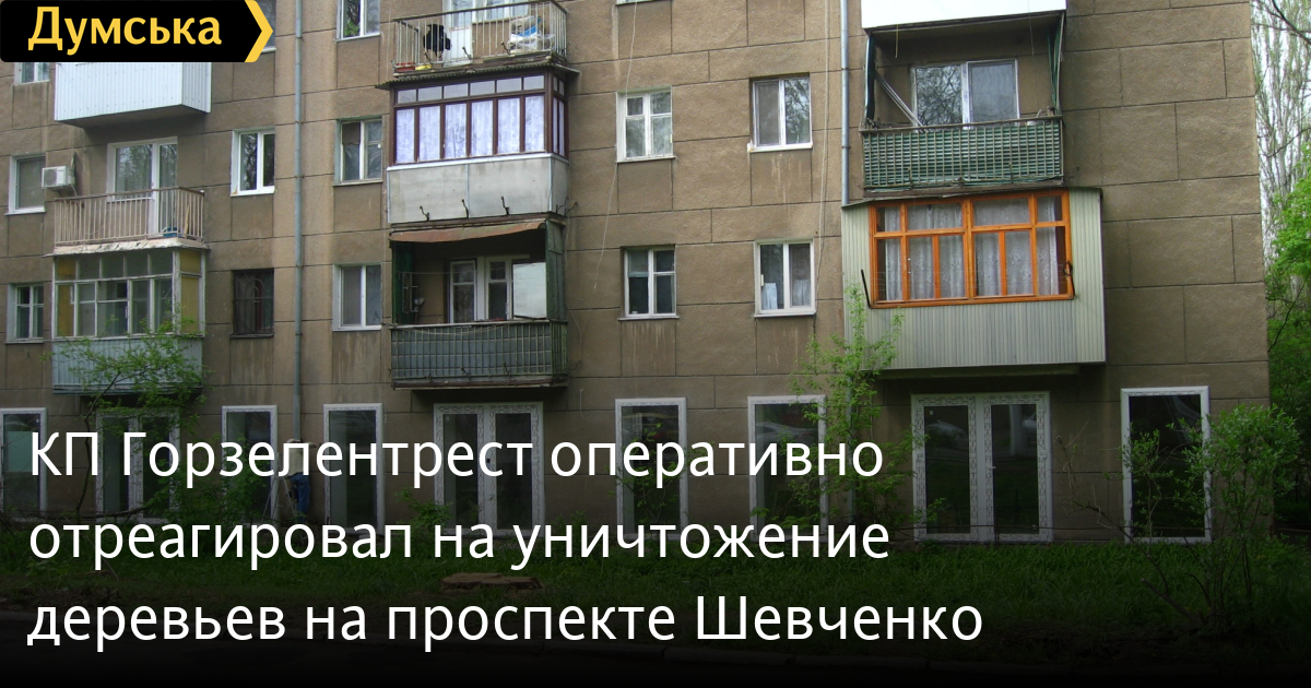 Пресс-служба КП «Горзелентрест» сообщает, что территория, на которой были срублены деревья, находится не в ведомстве «Горзелентреста», а является придомовой террриторией, подконтрольной местному ЖКС. Однако, несмотря на это, сотрудники предприятия намерены выяснить: на каких основаниях и кто произвел вырубку зеленых насаждений на проспекте Шевченко, обнаруженную утром 5 мая 2011 года.