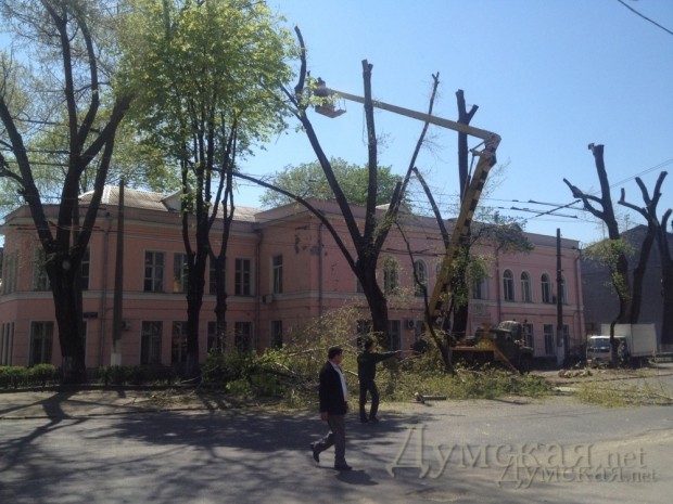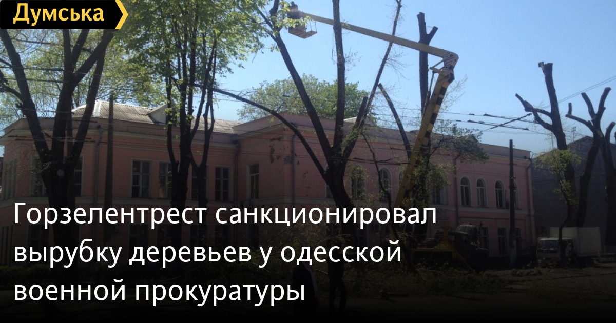 Вырубка зеленых насаждений у здания военной прокуратуры на углу Пироговской улицы и одноименного переулка (продолжение проспекта Шевченка) произошла в полном соответствии с законом и городскими нормативными актами, утверждает директор КП «Горзелентрест» Александр Риффа.