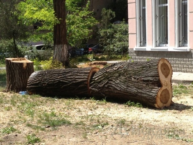 Между тем, на фотографиях видно, что были спилены здоровые деревья.