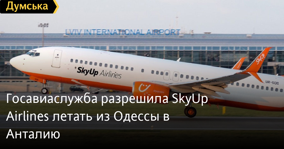 Госавиаслужба предоставила авиакомпании SkyUp Airlines права на полеты в Анталию из трех областных центров Украины. Соответствующий приказ подписал глава ведомства Александр Бильчук. Согласно нему, украинская авиакомпания может летать в Турцию из Харькова, Львова и Одессы. Речь идет о не менее одного рейса в неделю или не менее трех рейсов в месяц. Разрешение действительно до 27 марта 2021 года. СМЕРТЬ РОССИЙСКИМ ОККУПАНТАМ! Заметили ошибку? Выделяйте слова с ошибкой и нажимайте control-enter |