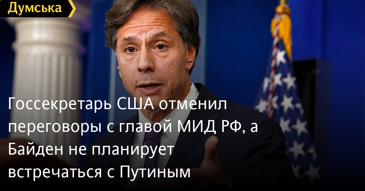«Когда мы видим, что вторжение начинается, и Россия ясно заявила о своем полном отказе от дипломатии, нет смысла проводить эту встречу сейчас», — считает Блинкен.