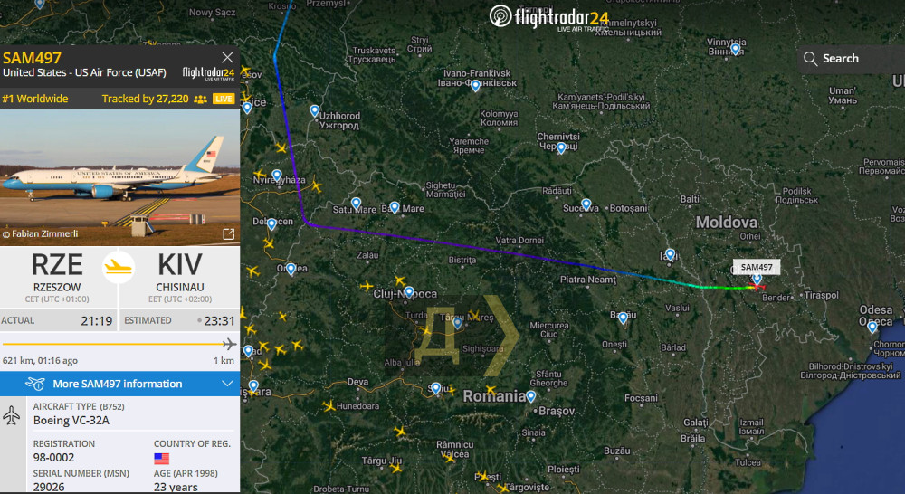 Правительственный Boeing VC-32A (модификация пассажирского Boeing757) коснулся ВПП Кишинева в 23:45.