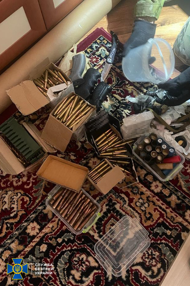 Під час обшуків за місцем проживання затриманого вилучено понад півтисячі набоїв різного калібру, зокрема набої 308 win для стрільби зі снайперської гвинтівки.