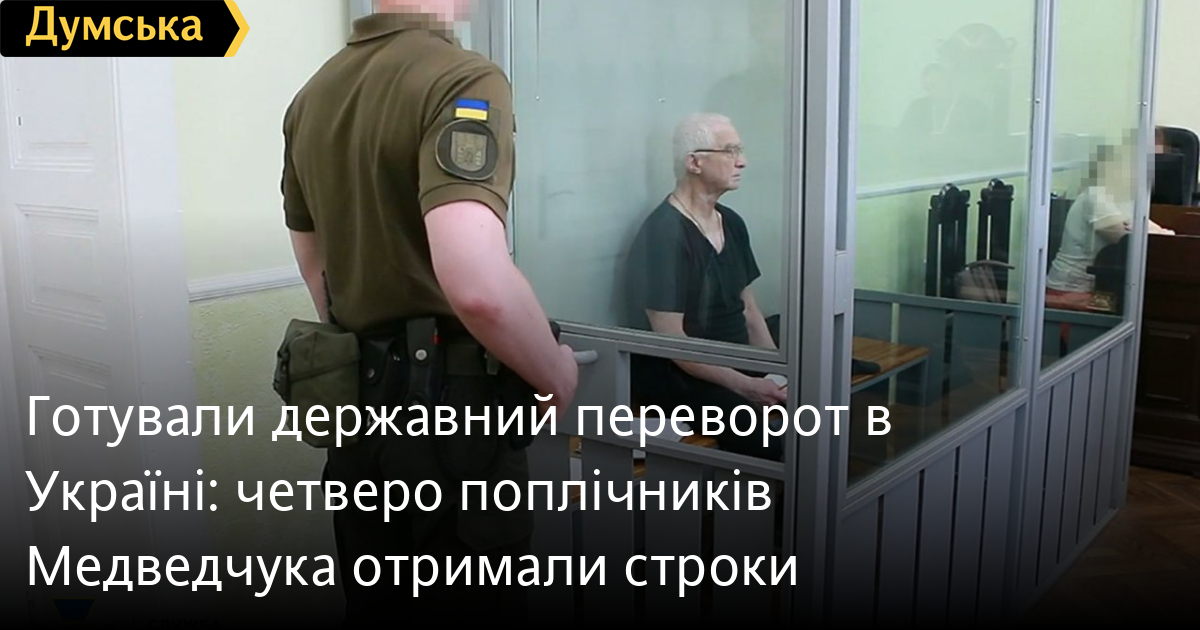 Чотирьох поплічників кума путіна та зрадника Віктора Медведчука суд відправив до в'язниці за підготовку насильницького захоплення влади в Україні.
