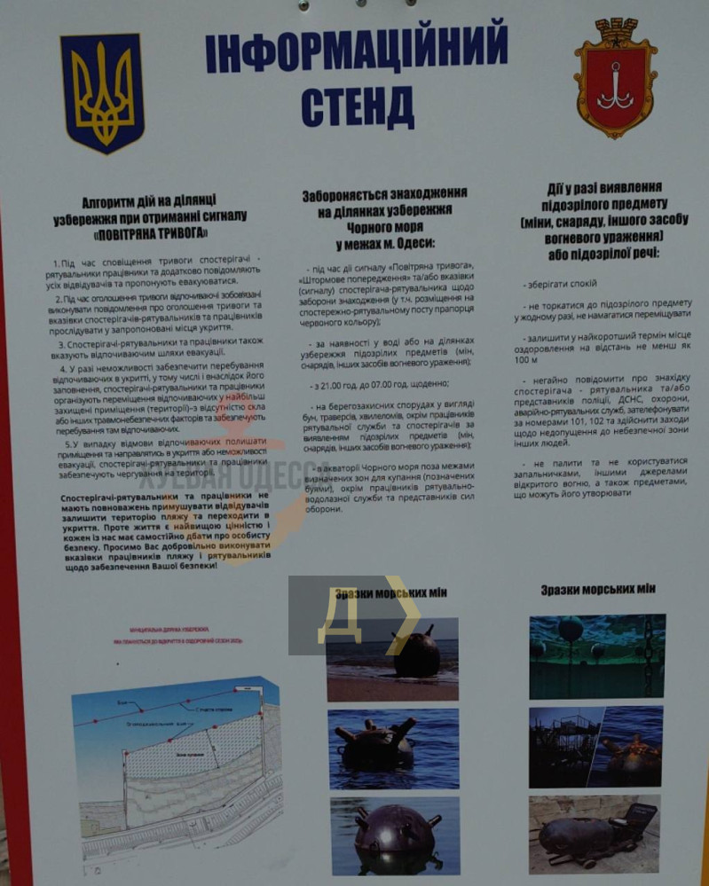 Крім того, на Золотому березі (16-та Фонтану) встановили інформаційний стенд зі схемою пляжу, на якій присутня зона купання, відокремлена від моря боновим загородженням.