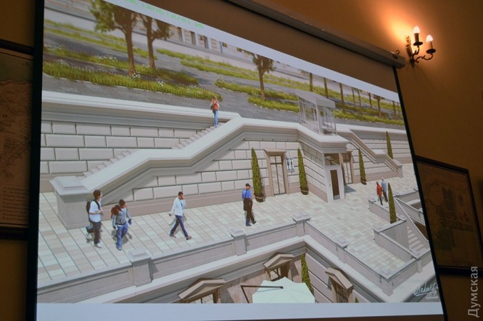 По словам архитектора, современные технологии позволяют воплотить замысел Воронцова в реальность. Одновременно с созданием нового общественного пространства строители укрепят склон и остановят сползание Приморского бульвара к морю.