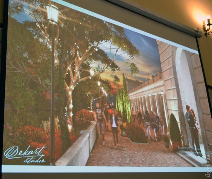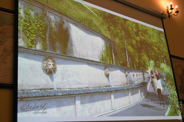 От Воронцовской колоннады к фонтану будут сбегать две изящные лестницы. По замыслу авторов, фонтан должен стать местом, где выпускники и молодожены будут фотографироваться на память. Прогулочные аллеи обещают расширить и благоустроить, а чуть ниже главного фонтана появится «Аллея со львами» – стена-фонтан, украшенная львиными маскаронами.