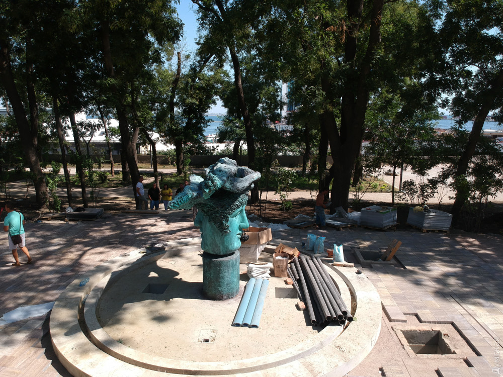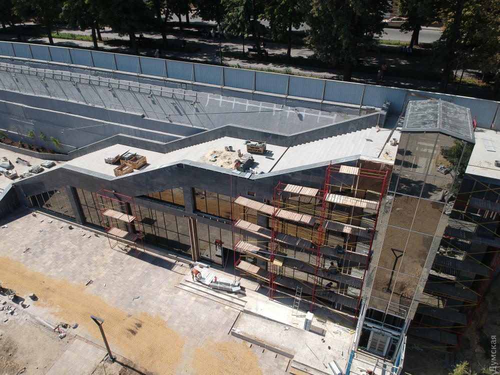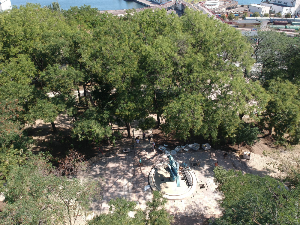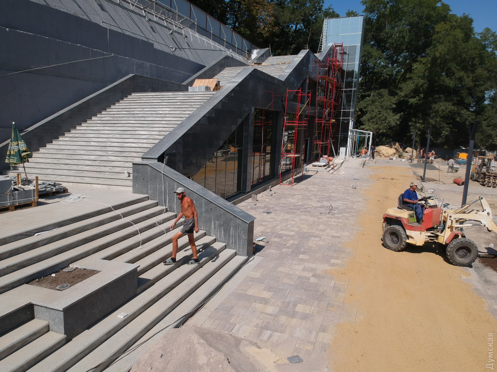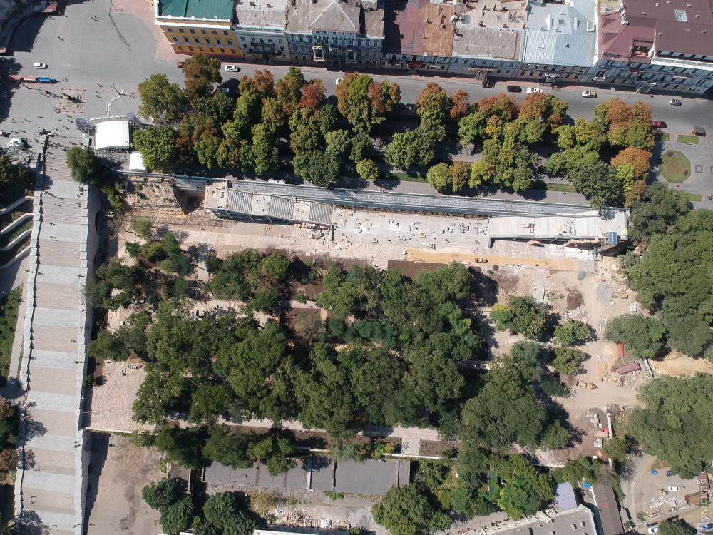 Две лестницы, ведущие с Приморского бульвара, почти закончили и сейчас их облицовывают гранитом. Установлен лифт для людей с ограниченными возможностями. «Зелентрестовцы» посадили новые деревья и занимаются укладкой газона.