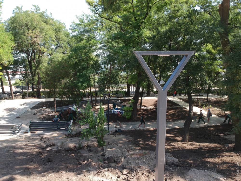 Работы в будущем Греческом парке, что под Приморским бульваром, ведутся в авральном режиме.