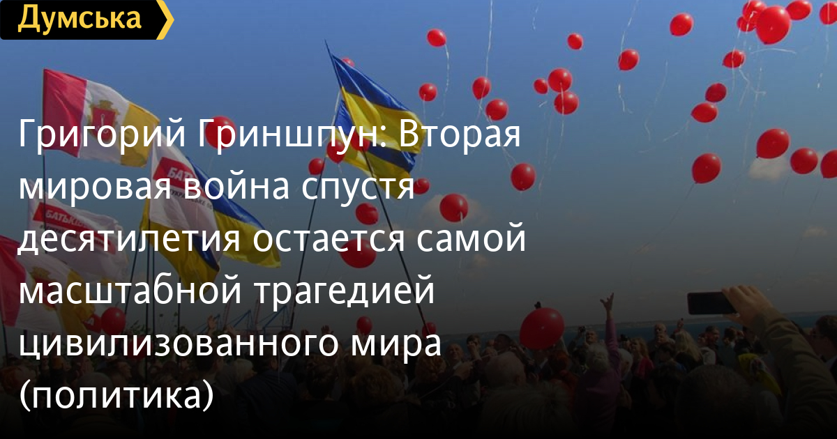 Григорий Гриншпун: «Вторая мировая война спустя десятилетия остается самой масштабной трагедией цивилизованного мира» (политика)8 и 9 мая представители Одесской городской организации ВО «Батькивщина» приняли участие в ряде мероприятий, приуроченных к 70-й годовщине Великой Победы. 8 мая активисты Одесской «Батькивщины» приняли участие в Молитве памяти по погибшим воинам и жертвам войны. Мероприятие, состоявшееся на Аллее Славы в парке Шевченко, собрало сотни одесситов различных конфессий. Почтение памяти погибших воинов, жертв войны, военных преступлений и депортаций накануне Дня Победы стало ежегодной общеевропейской традицией. В этот день общая Молитва в память о тех, чьи жизни унесла война, объединила жителей нашего родного Города-Героя. После Молитвы памяти активисты Одесской городской организации ВО «Батькивщина» поздравили ветеранов Второй мировой войны в каждом из районов Одессы. В преддверии Дня Победы Герои самой кровопролитной войны в истории человечества, вспоминали военные годы, свою молодость, свое горе и радость. Празднование семидесятого Дня Победы началось с открытия на Театральной площади новых имен на Стене Героев. В этот раз памятная Стена пополнилась еще 147-ю фамилиями — Героями Советского Союза и Героями Социалистического Труда. Далее активисты Одесской «Батькивщины» присоединились к торжественной церемонии возложения цветов на Аллее Славы, после чего провели символичный флешмоб ко Дню Победы. «Батькивщиновцы» запустили в небо 70 красных воздушных шаров как знак признательности всем Героям, которые 70 лет назад победили в неравной борьбе за мирное небо над Родиной. Представители партии отметили, что гордятся бессмертным подвигом наших предков и преклоняются перед всеми, кто сделал вклад в Великую Победу 1945 года. Также в этот день активисты «Батькивщины» Киевского района Одессы организовали праздник с оркестром, песнями военных лет и полевой кухней. Уже в течение 15 лет «батькивщиновцы» проводят подобные мероприятия в память о Великой Победе. «День Победы – воистину праздник со слезами на глазах. Вторая мировая война спустя десятилетия остается самой масштабной трагедией цивилизованного мира. И мы, потомки истинных Героев, не вправе забыть об этом. Только так мы сможем построить достойное настоящее и будущее. Только так мы сможем одержать новую Победу и вернуть мирное небо единой и суверенной Украине. Мы помним о Великой Победе и чтим наших героических предков. Настоящие Герои не умирают. Ни 70 лет назад, ни сейчас, в наши дни», – заявил глава Одесской городской организации ВО «Батькивщина» Григорий Гриншпун. СМЕРТЬ РОССИЙСКИМ ОККУПАНТАМ! Заметили ошибку? Выделяйте слова с ошибкой и нажимайте control-enter |