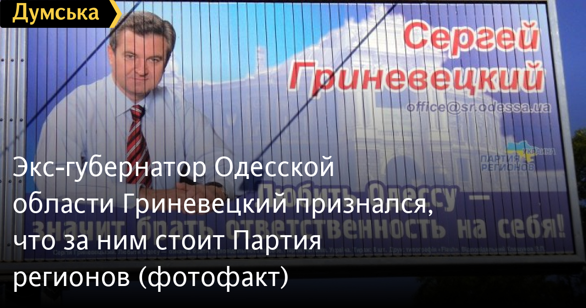 В Одессе появились билборды, на которых изображен кандидат в депутаты по Малиновскому району города Сергей Гриневецкий на фоне логотипа Партии регионов.