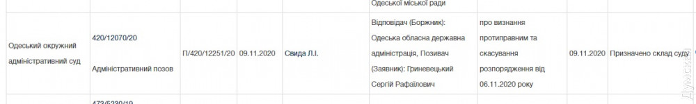 По нашим данным, недавно политик подал документы в ОГА на должность заместителя председателя ОГА и получил отказ: дескать, вы не можете быть чиновником до 2024 года, когда истекает срок упомянутого запрета. Гриневецкий обжаловал соответствующее распоряжение администрации от 6 ноября 2020 года в Одесском окружном административном суде. 9 ноября был сформирован состав суда, который будет рассматривать дело.