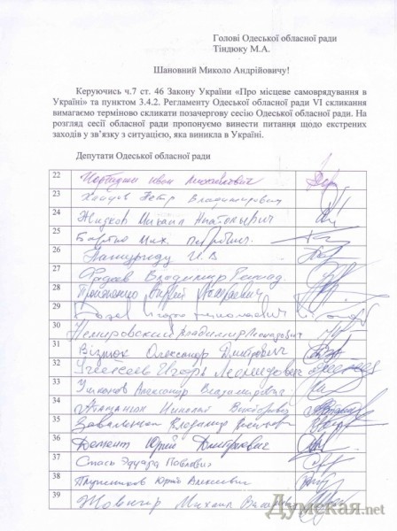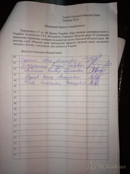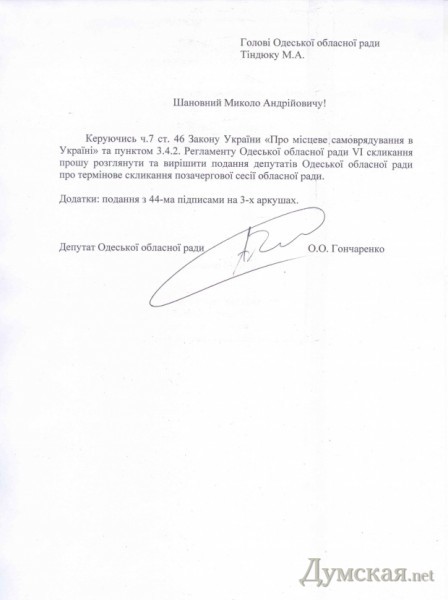 Под соответствующим заявлением подписались 44 народных избранника, или 1/3 от состава совета, что обязывает председателя собрания Николая Тиндюка назначить сессию.