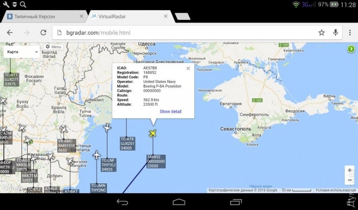 Интересно, что в это же время и в этом же месте над россиянами появился новейший американский базовый патрульный самолет Boeing P-8 Poseidon, который, сделав несколько кругов, ушел в западном направлении.