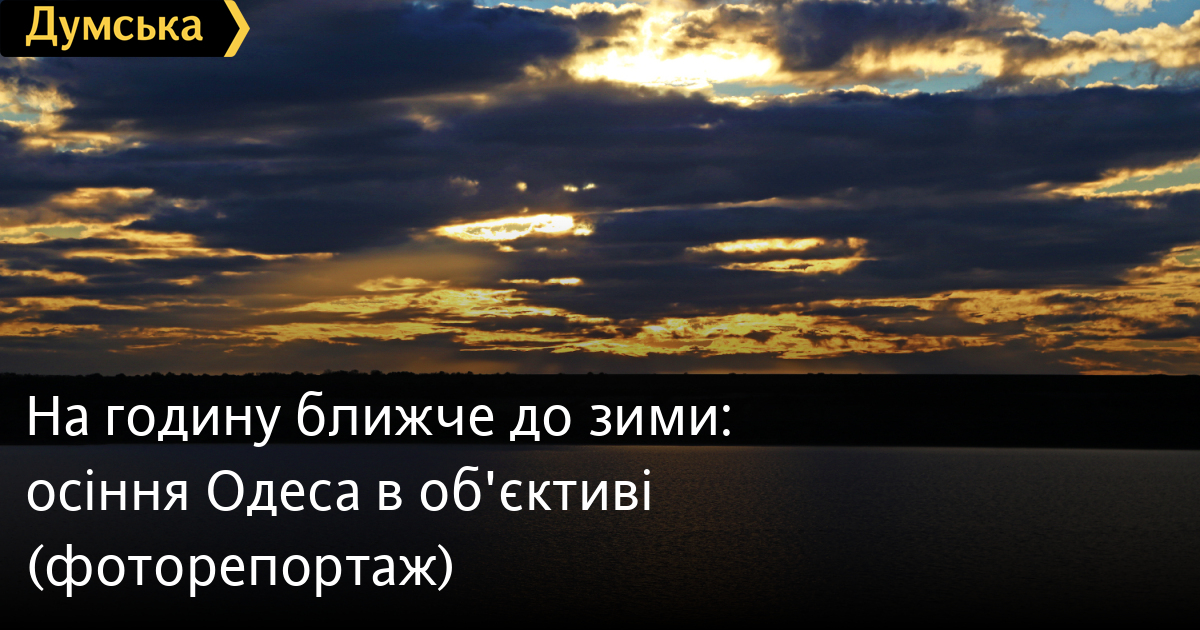 Жовтень запам'ятався дощами та похмурим небом. Після знаменитої зливи, що пройшла 30 вересня, в місті запахло глибокою осінню. Сумний осінній настрій прийшов від вогкої погоди — в наступні три тижні сонце майже не виходило з хмар, а стовпчик термометра не підіймався вище 13 градусів. Пора листопаду і жовто-червоних нарядів ще не настала, але міські алеї та парки вже готові до зустрічі роззяв, які знімають золоту осінь. Зараз багато хто вирушив до теплого моря, щоб вдихнути бадьорий солоний запах, вільний від присмаку спекотного сонця. За містом теж тихо – лимани напилися осінніми зливами й готові до зими. Зовсім скоро коротке багряне розмаїття фарб, за яким довге монохромне очікування березня. Фото Сергія Смоленцева СМЕРТЬ РОСІЙСЬКИМ ОКУПАНТАМ! Помітили помилку? Виділяйте слова з помилкою та натискайте control-enter |