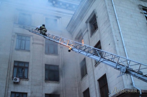 «В результате столкновений конфликтующих сторон, во время которых применялись бутылки с зажигательной смесью, возник пожар на втором и третьем этажах здания Одесской областной федерации профсоюзов. К месту пожара были направлены 13 единиц пожарно-спасательной техники и 51 спасатель», — говорится в сообщении.