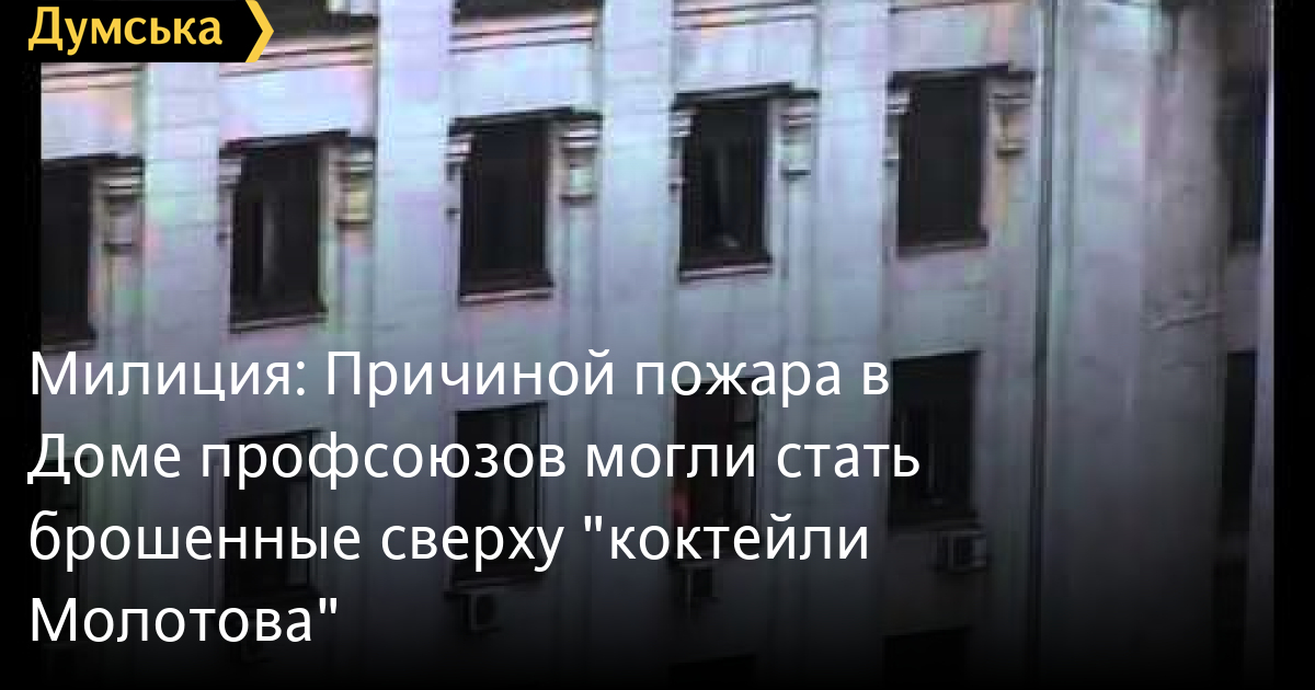 Милиция: Причиной пожара в Доме профсоюзов могли стать брошенные сверху «коктейли Молотова»Пожар в здании Дома профсоюзов мог начаться из-за брошенных сверху «коктейлей Молотова». Таковы предварительные выводы экспертов ГСЧС, обследовавших место происшествия, сообщает пресс-служба ГУ МВД в Одесской области. В пресс-службе отметили, что «антимайдановцы» забаррикадировались в здании Дома профсоюзов и забрасывали находившихся внизу людей бутылками с горючей смесью. Из-за этого могло возникнуть возгорание на верхних этажах здания, а затем огонь охватил значительную часть помещений. Напомним, в результате пожара погибло более 40 человек, пострадало более 120. В то же время в Сети появилось видео, на котором видно, что пожар в Доме профсоюзов начинается в одном из кабинетов на третьем этаже раньше, чем загорается входная дверь. СМЕРТЬ РОССИЙСКИМ ОККУПАНТАМ! Заметили ошибку? Выделяйте слова с ошибкой и нажимайте control-enter |