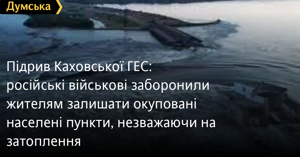 Російські військові не дозволили евакуюватися мирним жителям окупованих населених пунктів Херсонської області, які опинилися у зоні затоплення після підриву Каховської ГЕС.