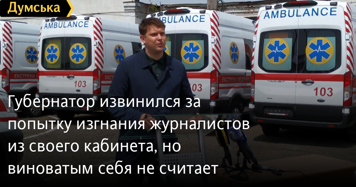 Губернатор извинился за попытку изгнания журналистов из своего кабинета, но виноватым себя не считаетГлава Одесской облгосадминистрации Максим Куцый извинился за свое «эмоциональное поведение» во время интервью, которое он давал журналистке телеканала «1+1» Юлии Червоненко. «Я не давал разрешения на видеофиксацию, — заявил губернатор на сегодняшнем брифинге. — Изначально я пригласил журналистов в кабинет, чтобы обсудить положение дел вокруг эпидемии коронавируса. После этого начались провокационные вопросы. Я всегда открыт и готов к конструктивному диалогу. Еще раз хотел бы извиниться за свое эмоциональное поведение. Но это касается только тех случаев, когда информацией спекулируют… Мой кабинет, действительно, является режимным объектом и охраняется Нацгвардией, поскольку кабинет главы ОГА является местом с высоким уровнем защиты информации». Инцидент, напомним, имел место в минувшую пятницу, после очередного брифинга Куцого. Юлия Червоненко подошла к главе ОГА на лестнице и попросила дать отдельный комментарий. Куцый согласился и пригласил съемочную группу к себе. В кабинете губернатор без проблем ответил на первый вопрос журналистки, но когда речь зашла о скандальной закупке карет скорой помощи, которые третий месяц стоят в отстойнике, чиновник резко поменял тон и потребовал прекратить съемку в «режимном кабинете», после чего вызвал бойцов Нацгвардии и приказал выгнать журналистов. В действиях Куцого есть признаки уголовного преступления, предусмотренного статьей 171 УК Украины — «препятствование законной профессиональной деятельности журналиста». К слову, сегодня председатель ОГА показал журналистам те самые 85 карет скорой помощи класса Б. По его словам, машины Ford Transit будут переданы центру экстренной медицины до вторника, но только в том случае, если им оформят госномера. Губернатор утверждает, что авто полностью укомплектованы. Более того, «начинку» по инициативе поставщика все-таки поменяли на «улучшенную» (напомним, именно эта замена — самая подозрительная часть сделки). СМЕРТЬ РОССИЙСКИМ ОККУПАНТАМ! Заметили ошибку? Выделяйте слова с ошибкой и нажимайте control-enter