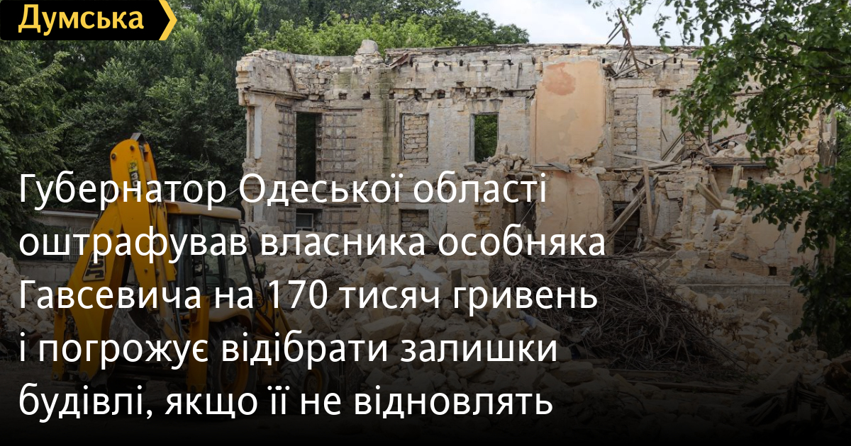 Слідом за мером Одеси, ситуацією зі знищенням пам'ятки архітектури, особняка Гавсевича в парку Шевченка перейнявся і новопризначений голова Одеської обласної військової адміністрації Олег Кіпер.