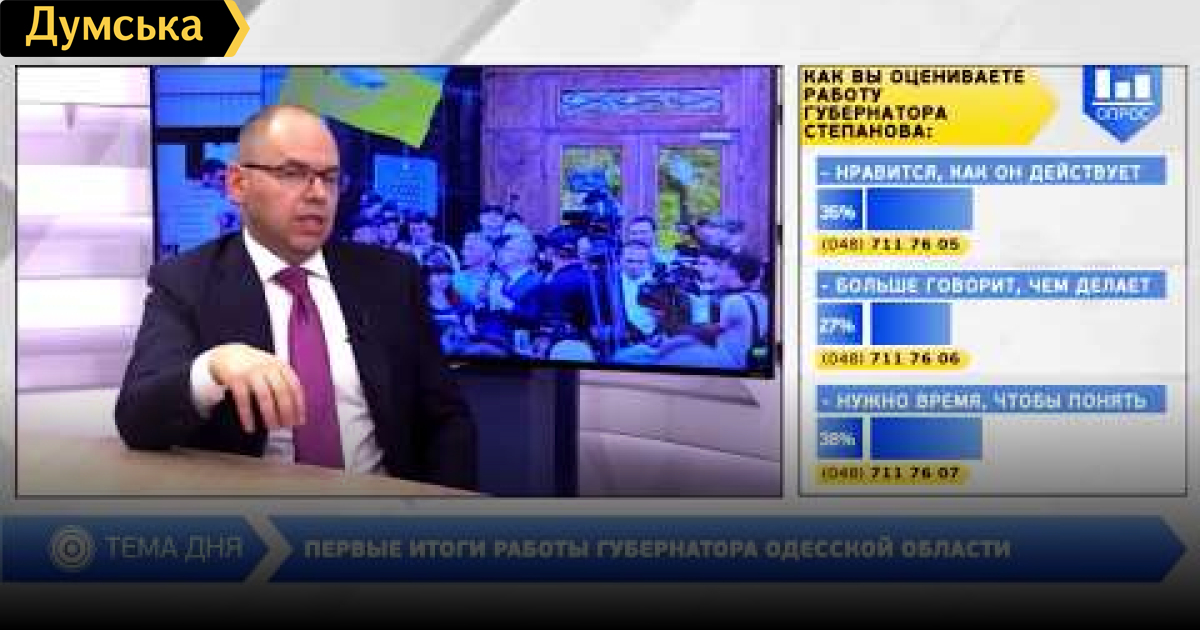 Губернатор рассказал о строительстве трассы «Одесса-Рени» и взлетно-посадочной полосе Одесского аэропортаПредседатель Одесской облгосадминистрации Максим Степанов в эфире «Думской ТВ» рассказал о ближайших планах по строительству в Одессе современной взлетно-посадочной полосы, о ситуации на Одесском ОПЗ, а также выразил уверенность о своевременном завершении ремонта трассы «Одесса-Рени». По словам губернатора, несмотря на скептические заяления Министра инфраструктуры Владимира Омеляна, он уверен, что ремонт трассы «Одесса-Рени» закончат в срок в этом году. «Что касается заявления Владимира Омелья по поводу того, что в этом году мы не успеем закончить, то могу сказать, что на сегодняшний день из 139 километров 30 уже полностью сданы, там идет установка знаков, 44 километра — в различных стадиях строительства и многие подходят к концу, на 15 километров выданы соответствующие разрешения и на остальные оставшиеся участки пройдены тендерные процедуры и проходит подготовка выдачи документов на проведения работ, — заявил Максим Степанов.- Трасса «Одесса-Рени» необходима 11 районам нашей области, от этого зависит развитие экономики, и на сегодняшний день темпы строительных работ вселяют уверенность, что мы закончим ремонт в сроки». Также чиновник заверил журналистов в том, что вскоре начнется строительство взлетно-посадочной полосы Одесского аэропорта. «Взлетно-посадочная полоса — эта наша боль последние 20 лет. Это тот приоритет, который ставил президент Украины, потому что все понимают, что развитие транспортной логистики региона невозможно без нормального функционирования взлетно-посадочной полосы. Полгода практически каждую неделю совместно с мэрией города мы этим занимаемся, и я думаю, что в ближайшее время начнутся строительные работы. Я надеюсь, в течение полтора месяца мы начнем ее строительство»,- рассказал губернатор. Кроме того, он сказал, что делает все возможное, чтобы Одесский ОПЗ работал стабильно. «Буквально завтра у нас совещание у Кубива (министр экономического развития Украины Степан Кубив, — Ред.) по этому поводу, потому что нужно обеспечить стабильную работу этого предприятия». Затем Степанов высказал свое восхищение Одесским кинофестивалем. «Очень замечательно, что кинофестиваль проходит в Одессе. Это не просто одесский бренд, а бренд украинский, — считает губернатор. — Мы уже списались с Викторией Тигипко, где договорились, что в ближайшее время встретимся и обсудим как сделать так, чтобы девятый кинофестиваль, был лучше восьмого». Полное интервью смотрите на видео. СМЕРТЬ РОСІЙСЬКИМ ОКУПАНТАМ! Помітили помилку? Виділяйте слова з помилкою та натискайте control-enter
