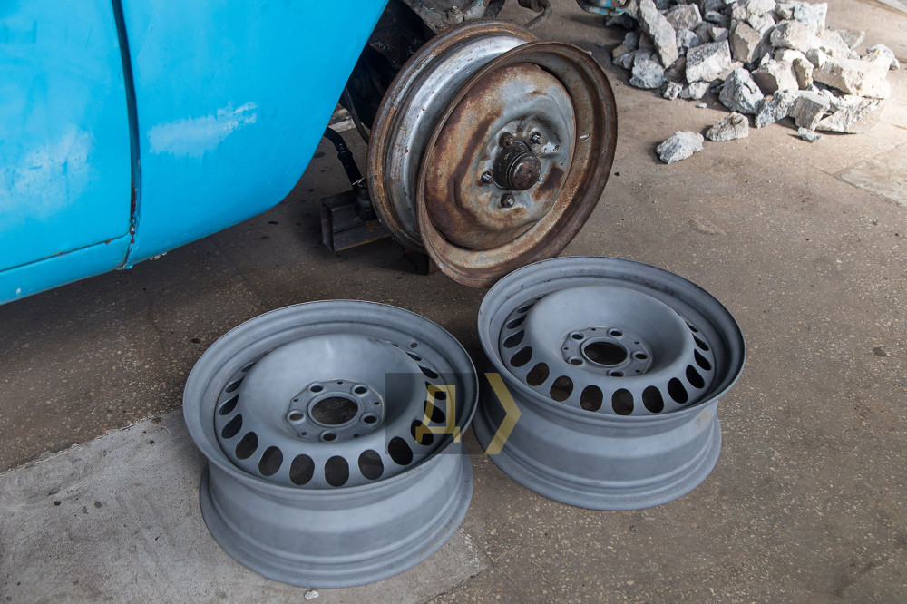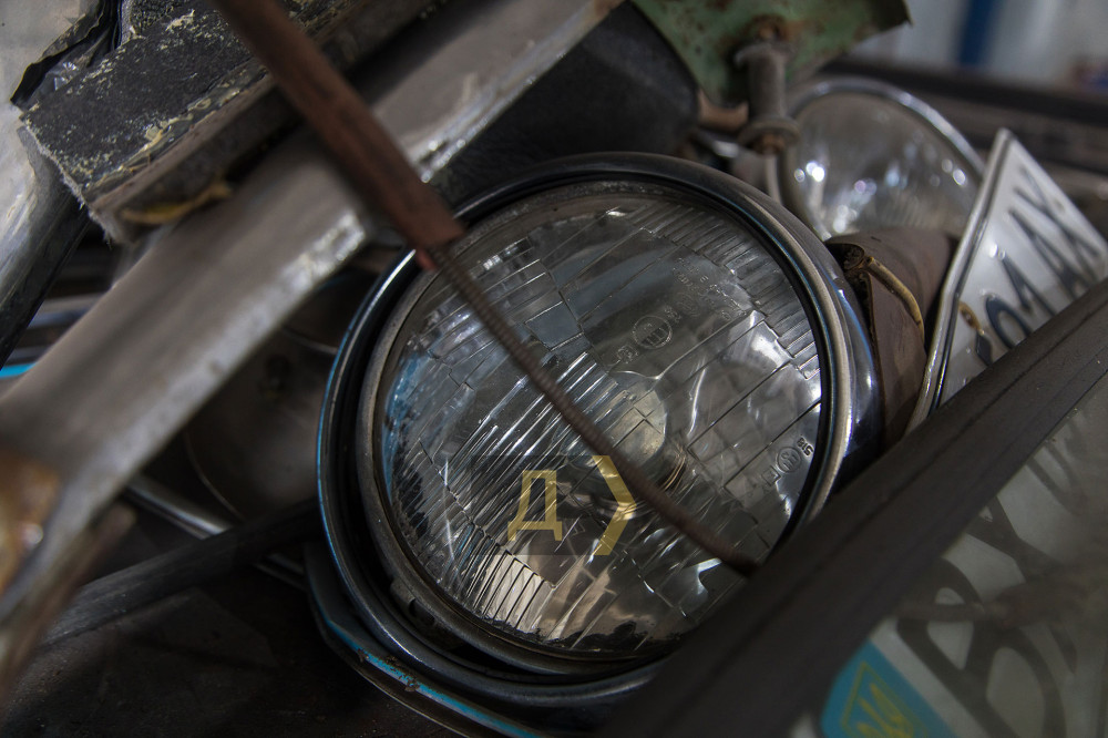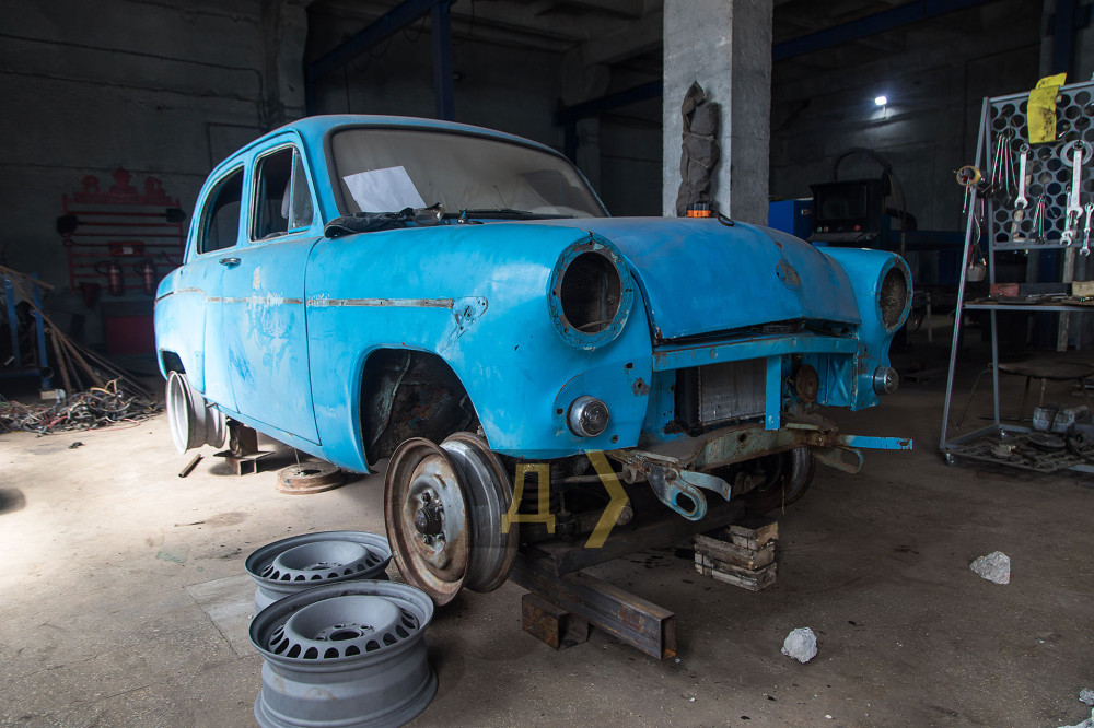 По цеху розосереджені автомобілі в різній стадії розібраності: біля великого вікна 403-й «Москвич» кольору небесної лазурі, трохи далі сірий та брутальний ГАЗ-67 та два старі дизельні мерседеси. Усі вони після модернізації стануть бойовими машинами для підрозділів Збройних сил та волонтерів.