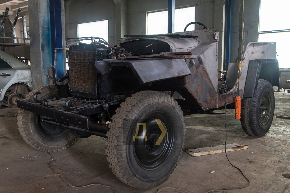 «Одночасно нам пожертвували ГАЗ-67, – розповідає Сергій Щербаков. — Машина раритетна, 1953 року випуску, об'єм двигуна 3,3 литру, військовий позашляховик. Він увесь гнилий був. Потроху лікуємо дідуся, вчора поставили кузов на раму, виправили геометрію. Він буде готовий за тиждень – максимум півтора, після чого віддамо ЗСУ».
