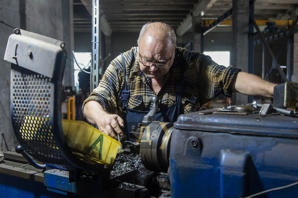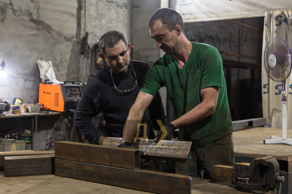 У цеху вирує робота: на металевому столі робітники варять стовпи освітлення для якоїсь бази відпочинку. За словами Сергія Щербакова, останні кілька тижнів економіка регіону почала оживати і у підприємства нарешті з'явилося перше цивільне замовлення. До цього всі потужності були спрямовані на допомогу армії.