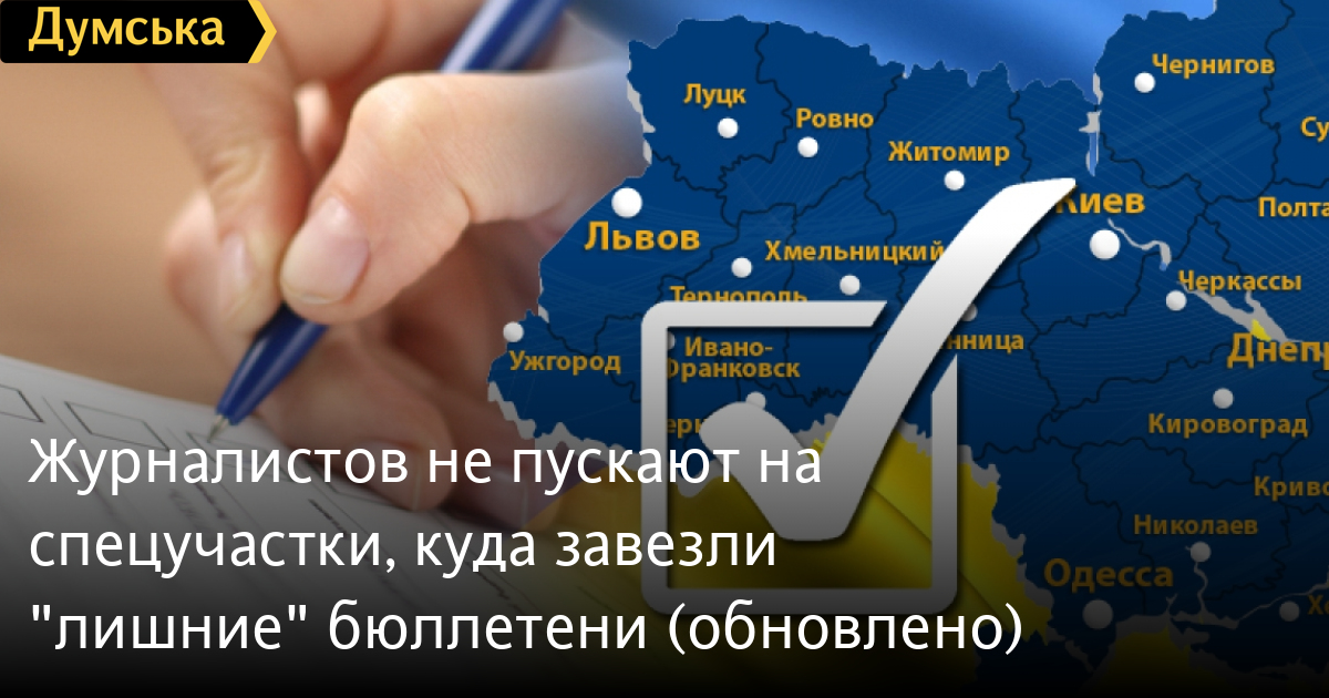 Так, репортеры «Думской» не сумели попасть на участок в Одесском следственном изоляторе (1000 дополнительных бюллетеней), а съемочные группы «7-го телеканала» и «Репортера» — в военный госпиталь на Пироговской (400 лишних бюллетеней).