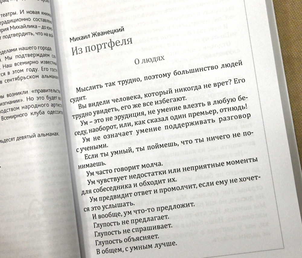 «Когда-то мы мечтали издать 90 альманахов, — рассказал вице-президент ВКО Евгений Голубовский. — Если ничто не помешает, ко 2 сентября мы выпустим девяностый. В новом альманахе появился раздел «Под звуки воздушной тревоги». Это эссе, написанные в дни, когда Одесса была под обстрелами. Но прежде всего я советую прочесть Жванецкого и Михайлика, Пойзнера и Муратова, Хинта и Базарова…»