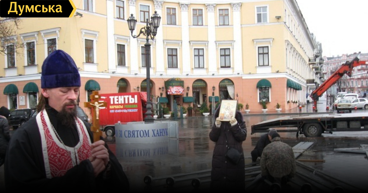 РS.: Для нормального человека — факт установления Миноры и приглашение к общему празднованию всех одесситов и всех конфессий и национальностей (в одесской старой традиции толерантности!!! )могбы только приветствоваться А в «новой» старой традиции — возможно хассидам надо бы задуматься, что они не в той, старой Одессе и их уже не ;)% населения и что представители (не все!!! ) набравшего силу, хоть и расколотого православия — своих старых «традиций» не изменили