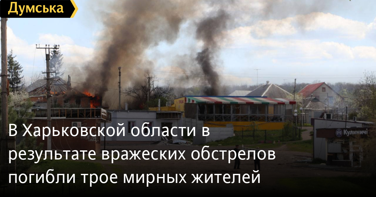 Три человека погибли и восемь получили ранения в результате обстрелов Харьковской области 1 мая.