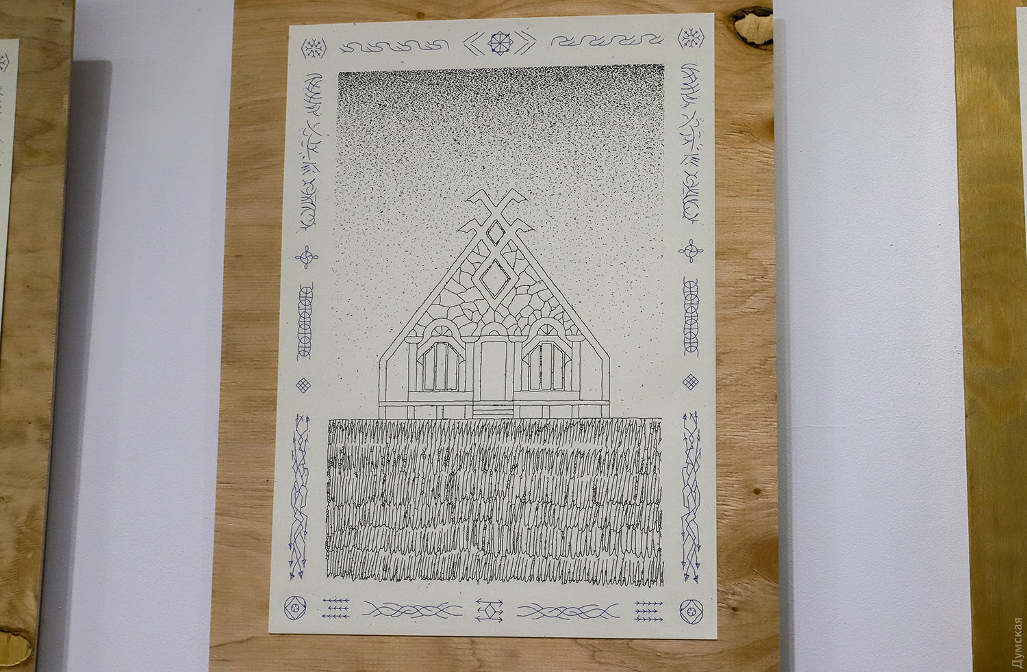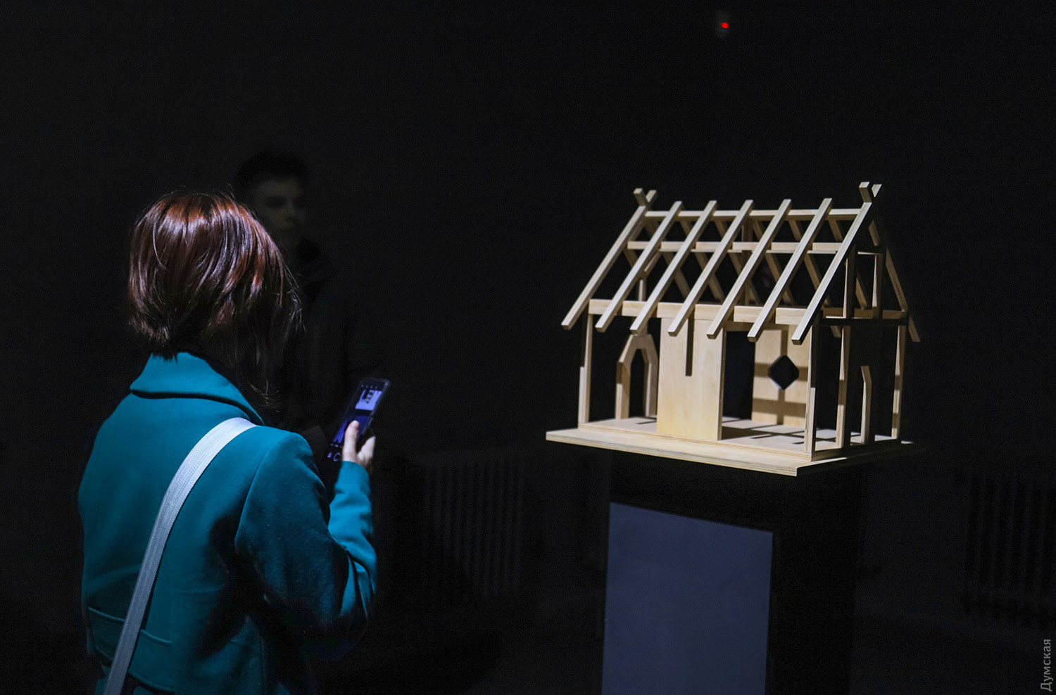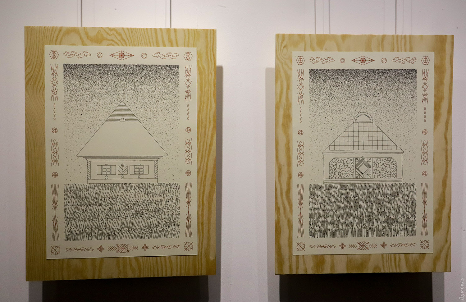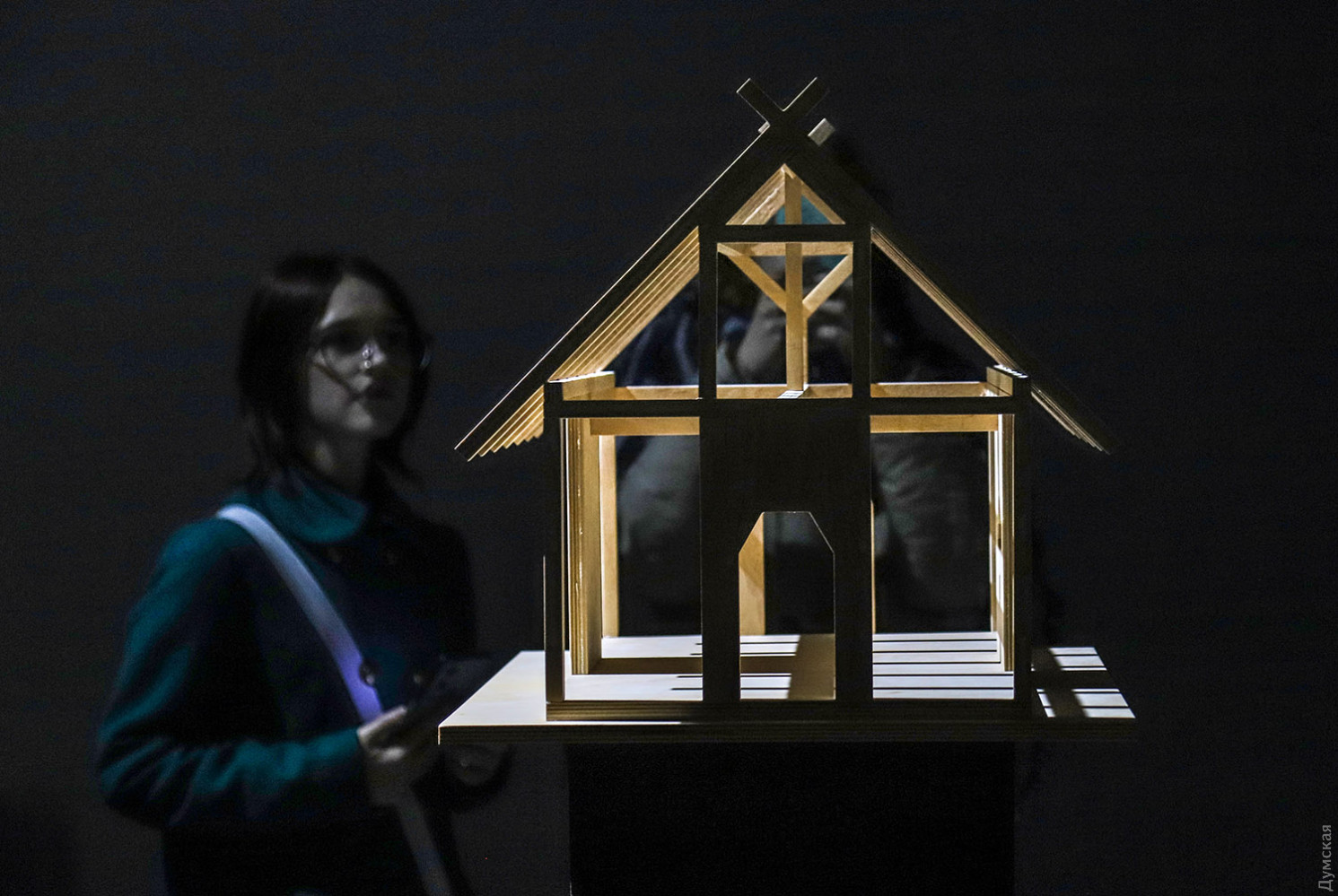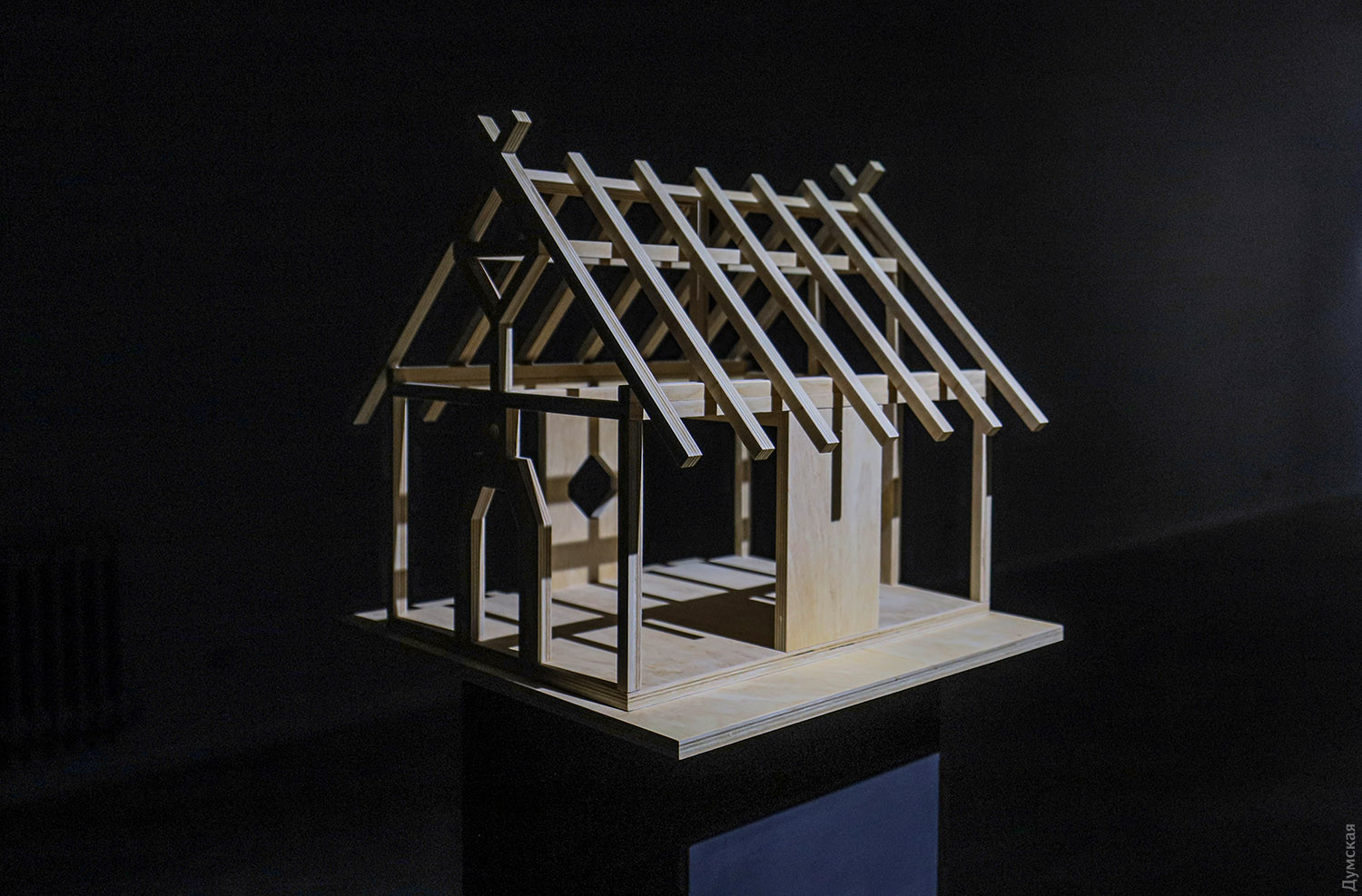 Выставочный проект «Хаталог» начал работу в Одесском национальном художественном музее. Этот своеобразный «каталог хат» создала архитектурная группа МНПЛ, которая, как утверждает музейный куратор Владимир Чигринец, сохраняет анонимность, поскольку что бы то ни было личное в таком проекте лишнее. МНПЛ основана в Одессе в 2009 году. Основные направления деятельности — практики по концептуальной архитектуре, исследования и анализ среды, где рациональные методы архитектурного проектирования пересекаются с практиками современного искусства. «Думская» однажды освещала интересный проект группы Hall of fake здесь. И снова художники использовали фанеру, брус и другие материалы, из которых делают театральные декорации. Проект «Хаталог» ставит целью переосмысление наследия и поиск актуального языка, на котором можно говорить о нем сегодня. А сегодня каждый украинец может потерять дом или распрощаться с жизнью, не выходя из собственного жилища. Это непросто вообразить европейскому зрителю, так что приблизить его к нашим реалиям помогла, в частности, интерактивная инсталляция в рамках проекта, впервые реализованная совместно с галереей Traffic Design при финансовой поддержке UNICEF и города Гдыня. Наш зритель также может оказаться внутри хаты-декорации, стены которой словно вынесло взрывной волной, и соответствующее шумовое сопровождение не дает отвлечься… Спокойнее публика чувствует себя в зале, где художники предлагают посмотреть на украинскую хату как на смысловое пространство — особенный архитектурный объект, где утилитарное тесно связано с символическим. Графические листы знакомят нас с разновидностями украинских хат. Хатой обычно называют одноэтажное жилье на одну или три комнаты, базовым ядром всех разновидностей является жилое помещение и сени (тамбур-шлюз). На Галичине и Полесье стены клали из деревянного сруба, в зоне лесостепи и на юге более распространенными материалами были камень, обмазанный глиной каркас из дерева или глиняные блоки (саман). Для художников хата становится местом для эксперимента, в котором они исследуют: как работать с наслоением истории запретов украинской культуры и попытками ее сохранить? Как рассказать о формировании упрощенного и предубежденного отношения к традиционной архитектуре? Авторы акцентируют на том, что связь с селом важна через ее защитную роль в украинской культуре. Небольшие поселения подвергались в намного меньшей степени чужеродным вмешательствам, там лучше сохранилась народная архитектура. Почему ко времени вспоминать о защитной роли жилья, объяснять не надо. Когда угрожает опасность, человек молится всем богам сразу, и недаром для наших предков ведущую роль в украшении хаты играли символичность и сакральность пространства. Элементы язычества, местных верований не отбрасывались. Христианство тоже учитывалось. Так, оконные отверсти служили «глазами» хаты, распространенная пятигранная форма входной арки, притвора, наследует силуэт церкви, а низкая дверная перемычка заставляет гостя перед входом склониться, что подчеркивает обрядовость жилья. На троицу миров делится вертикально внутреннее пространство хаты. Пол создает связь с землей, за средний мир отвечает древо жизни, изображение которого часто присутствует как внутри, так и снаружи здания. Притолока, ясное дело, «д
