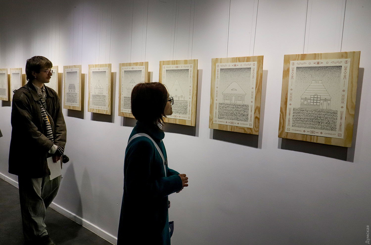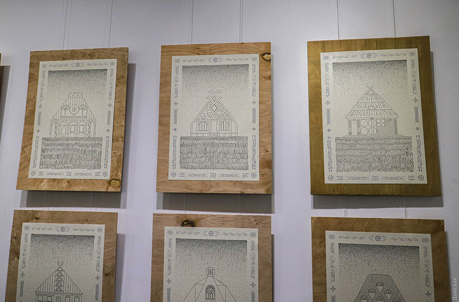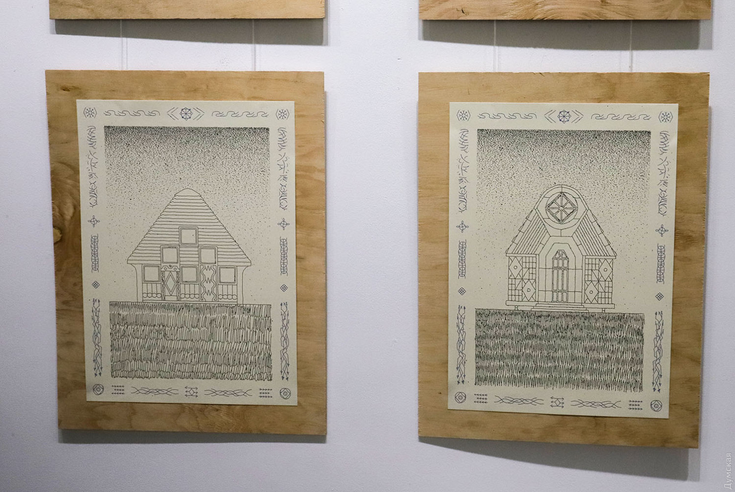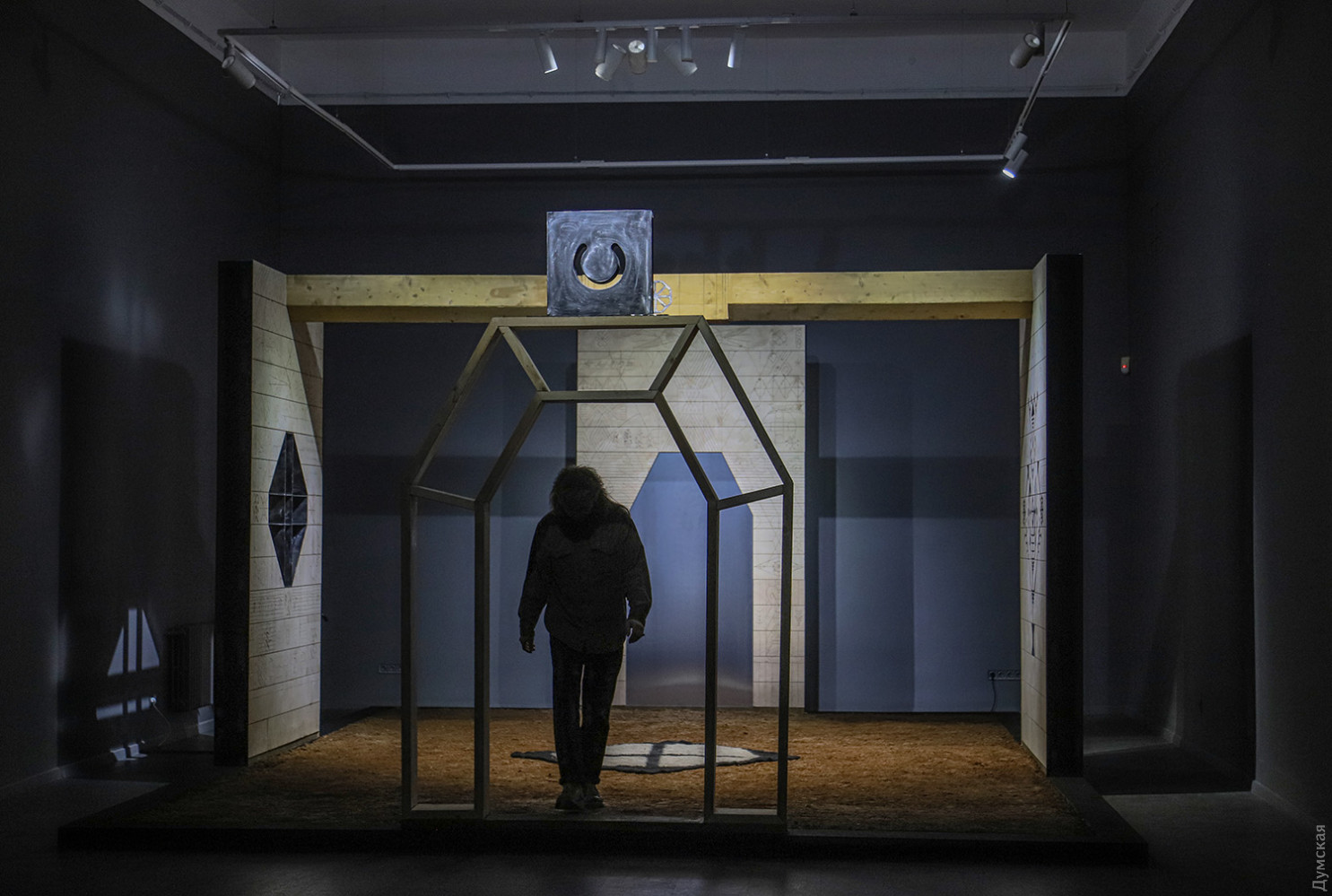 Выставочный проект «Хаталог» начал работу в Одесском национальном художественном музее. Этот своеобразный «каталог хат» создала архитектурная группа МНПЛ, которая, как утверждает музейный куратор Владимир Чигринец, сохраняет анонимность, поскольку что бы то ни было личное в таком проекте лишнее. МНПЛ основана в Одессе в 2009 году. Основные направления деятельности — практики по концептуальной архитектуре, исследования и анализ среды, где рациональные методы архитектурного проектирования пересекаются с практиками современного искусства. «Думская» однажды освещала интересный проект группы Hall of fake здесь. И снова художники использовали фанеру, брус и другие материалы, из которых делают театральные декорации. Проект «Хаталог» ставит целью переосмысление наследия и поиск актуального языка, на котором можно говорить о нем сегодня. А сегодня каждый украинец может потерять дом или распрощаться с жизнью, не выходя из собственного жилища. Это непросто вообразить европейскому зрителю, так что приблизить его к нашим реалиям помогла, в частности, интерактивная инсталляция в рамках проекта, впервые реализованная совместно с галереей Traffic Design при финансовой поддержке UNICEF и города Гдыня. Наш зритель также может оказаться внутри хаты-декорации, стены которой словно вынесло взрывной волной, и соответствующее шумовое сопровождение не дает отвлечься… Спокойнее публика чувствует себя в зале, где художники предлагают посмотреть на украинскую хату как на смысловое пространство — особенный архитектурный объект, где утилитарное тесно связано с символическим. Графические листы знакомят нас с разновидностями украинских хат. Хатой обычно называют одноэтажное жилье на одну или три комнаты, базовым ядром всех разновидностей является жилое помещение и сени (тамбур-шлюз). На Галичине и Полесье стены клали из деревянного сруба, в зоне лесостепи и на юге более распространенными материалами были камень, обмазанный глиной каркас из дерева или глиняные блоки (саман). Для художников хата становится местом для эксперимента, в котором они исследуют: как работать с наслоением истории запретов украинской культуры и попытками ее сохранить? Как рассказать о формировании упрощенного и предубежденного отношения к традиционной архитектуре? Авторы акцентируют на том, что связь с селом важна через ее защитную роль в украинской культуре. Небольшие поселения подвергались в намного меньшей степени чужеродным вмешательствам, там лучше сохранилась народная архитектура. Почему ко времени вспоминать о защитной роли жилья, объяснять не надо. Когда угрожает опасность, человек молится всем богам сразу, и недаром для наших предков ведущую роль в украшении хаты играли символичность и сакральность пространства. Элементы язычества, местных верований не отбрасывались. Христианство тоже учитывалось. Так, оконные отверсти служили «глазами» хаты, распространенная пятигранная форма входной арки, притвора, наследует силуэт церкви, а низкая дверная перемычка заставляет гостя перед входом склониться, что подчеркивает обрядовость жилья. На троицу миров делится вертикально внутреннее пространство хаты. Пол создает связь с землей, за средний мир отвечает древо жизни, изображение которого часто присутствует как внутри, так и снаружи здания. Притолока, ясное дело, «д