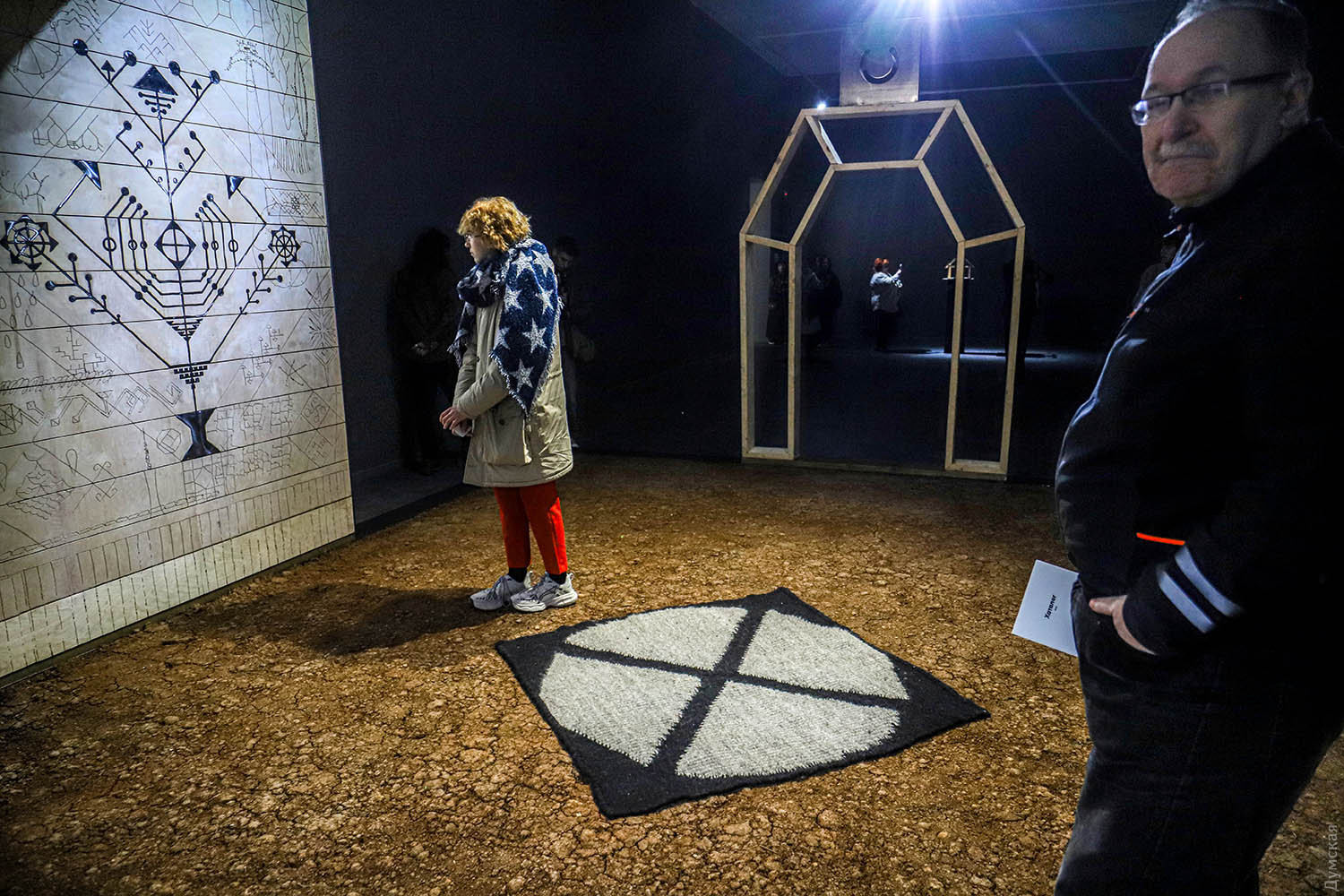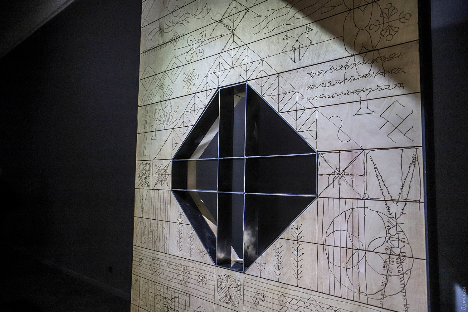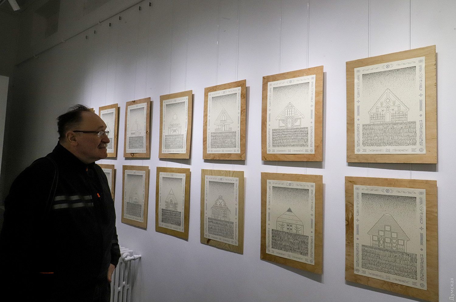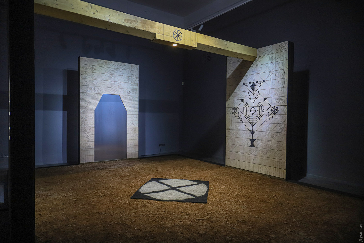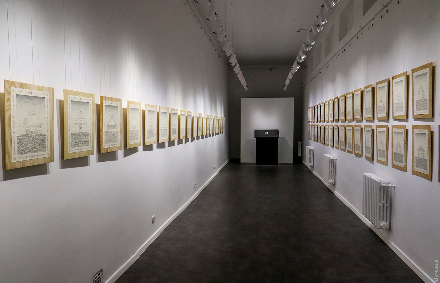 Выставочный проект «Хаталог» начал работу в Одесском национальном художественном музее. Этот своеобразный «каталог хат» создала архитектурная группа МНПЛ, которая, как утверждает музейный куратор Владимир Чигринец, сохраняет анонимность, поскольку что бы то ни было личное в таком проекте лишнее. МНПЛ основана в Одессе в 2009 году. Основные направления деятельности — практики по концептуальной архитектуре, исследования и анализ среды, где рациональные методы архитектурного проектирования пересекаются с практиками современного искусства. «Думская» однажды освещала интересный проект группы Hall of fake здесь. И снова художники использовали фанеру, брус и другие материалы, из которых делают театральные декорации. Проект «Хаталог» ставит целью переосмысление наследия и поиск актуального языка, на котором можно говорить о нем сегодня. А сегодня каждый украинец может потерять дом или распрощаться с жизнью, не выходя из собственного жилища. Это непросто вообразить европейскому зрителю, так что приблизить его к нашим реалиям помогла, в частности, интерактивная инсталляция в рамках проекта, впервые реализованная совместно с галереей Traffic Design при финансовой поддержке UNICEF и города Гдыня. Наш зритель также может оказаться внутри хаты-декорации, стены которой словно вынесло взрывной волной, и соответствующее шумовое сопровождение не дает отвлечься… Спокойнее публика чувствует себя в зале, где художники предлагают посмотреть на украинскую хату как на смысловое пространство — особенный архитектурный объект, где утилитарное тесно связано с символическим. Графические листы знакомят нас с разновидностями украинских хат. Хатой обычно называют одноэтажное жилье на одну или три комнаты, базовым ядром всех разновидностей является жилое помещение и сени (тамбур-шлюз). На Галичине и Полесье стены клали из деревянного сруба, в зоне лесостепи и на юге более распространенными материалами были камень, обмазанный глиной каркас из дерева или глиняные блоки (саман). Для художников хата становится местом для эксперимента, в котором они исследуют: как работать с наслоением истории запретов украинской культуры и попытками ее сохранить? Как рассказать о формировании упрощенного и предубежденного отношения к традиционной архитектуре? Авторы акцентируют на том, что связь с селом важна через ее защитную роль в украинской культуре. Небольшие поселения подвергались в намного меньшей степени чужеродным вмешательствам, там лучше сохранилась народная архитектура. Почему ко времени вспоминать о защитной роли жилья, объяснять не надо. Когда угрожает опасность, человек молится всем богам сразу, и недаром для наших предков ведущую роль в украшении хаты играли символичность и сакральность пространства. Элементы язычества, местных верований не отбрасывались. Христианство тоже учитывалось. Так, оконные отверсти служили «глазами» хаты, распространенная пятигранная форма входной арки, притвора, наследует силуэт церкви, а низкая дверная перемычка заставляет гостя перед входом склониться, что подчеркивает обрядовость жилья. На троицу миров делится вертикально внутреннее пространство хаты. Пол создает связь с землей, за средний мир отвечает древо жизни, изображение которого часто присутствует как внутри, так и снаружи здания. Притолока, ясное дело, «д
