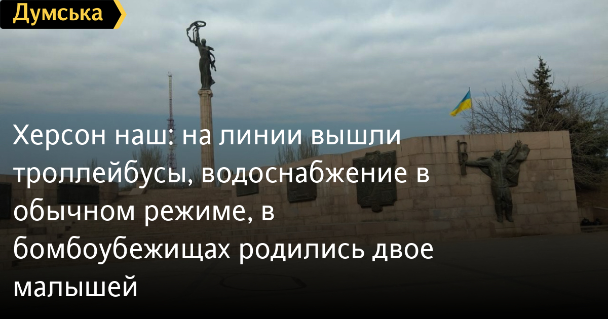 Херсон наш: на линии вышли троллейбусы, водоснабжение в обычном режиме, в бомбоубежищах родились двое малышейХерсон остается под контролем Украины. Об этом сообщает мэр города Игорь Колыхаев. По его словам, город работает и живет — в 6:30 на линии вышли первые троллейбусы. «Успеваем по чуть-чуть даже убирать город. С продуктами и хлебом вопрос решаем. Водоснабжение в обычном режиме. Про «воду по часам» — фейк», — сказал мэр. Оперативно устраняются все аварии. «Вчера в бомбоубежищах Херсона родились двое здоровых мальчишек. Наши медики были готовы и все прошло успешно — и для мам, и для новых херсонцев. Будем жить», — добавил Колыхаев. Напомним, вчера подразделения ВСУ вели ожесточенные бои с оккупантами за Херсон и мост через Днепр. Враг был отброшен, а над Парком Славы реет украинский флаг. СМЕРТЬ РОССИЙСКИМ ОККУПАНТАМ! Заметили ошибку? Выделяйте слова с ошибкой и нажимайте control-enter |