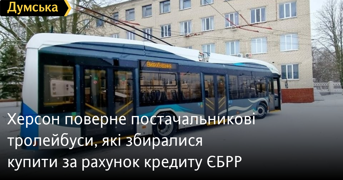 Херсон поверне постачальникові тролейбуси, які збиралися купити за рахунок кредиту ЄБРРЧотири нові тролейбуси, які мерія Херсона планувала придбати коштом кредиту Європейського банку реконструкції та розвитку, повернуть постачальнику. Як повідомили в мерії звільненого міста, ці машини прибули до Херсона 23 лютого для тестових випробувань. Їх передали на підставі договору відповідального зберігання, згідно з умовами якого власник майна може в будь-який момент звернутися до зберігача з вимогою його повернути. До початку повномасштабного вторгнення тролейбуси так і не стали власністю міста. КП «Херсонелектротранс» не отримало кредит, тому транспортні засоби доведеться повернути. «Відсутність цих чотирьох одиниць електротранспорту жодним чином не позначиться на забезпеченні потреб міста в умовах воєнного стану і тих умовах, у яких місто-герой Херсон перебуває зараз. Міська влада робить усе від неї залежне для забезпечення міста транспортом у доступний спосіб. Крім того, влада веде переговори з міжнародними донорами щодо отримання додаткових транспортних засобів на безоплатній основі», — зазначили в муніципалітеті. СМЕРТЬ РОСІЙСЬКИМ ОКУПАНТАМ! Помітили помилку? Виділяйте слова з помилкою та натискайте control-enter |