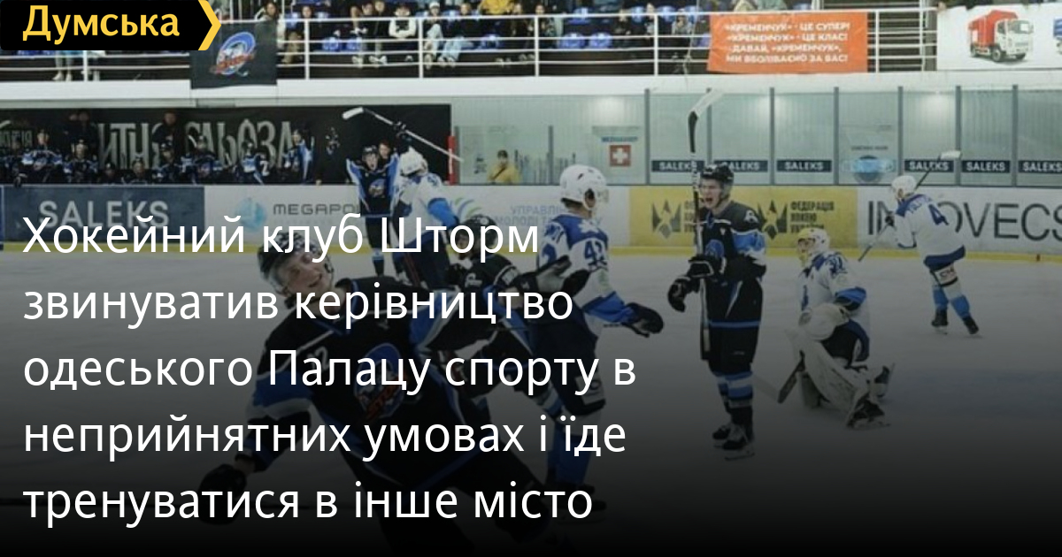 Одеський хокейний клуб «Шторм» припиняє тренування на льодовій арені одеського Палацу спорту і переїжджає в інший регіон. Як повідомляє керівництво клубу в офіційній заяві, серед причин: розморожена льодова арена і «неприйнятні» умови перебування команди.