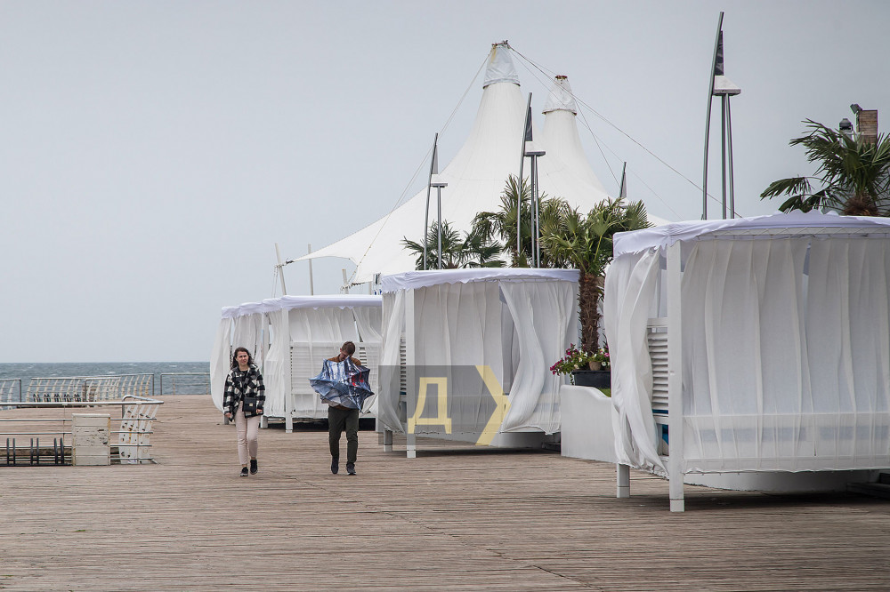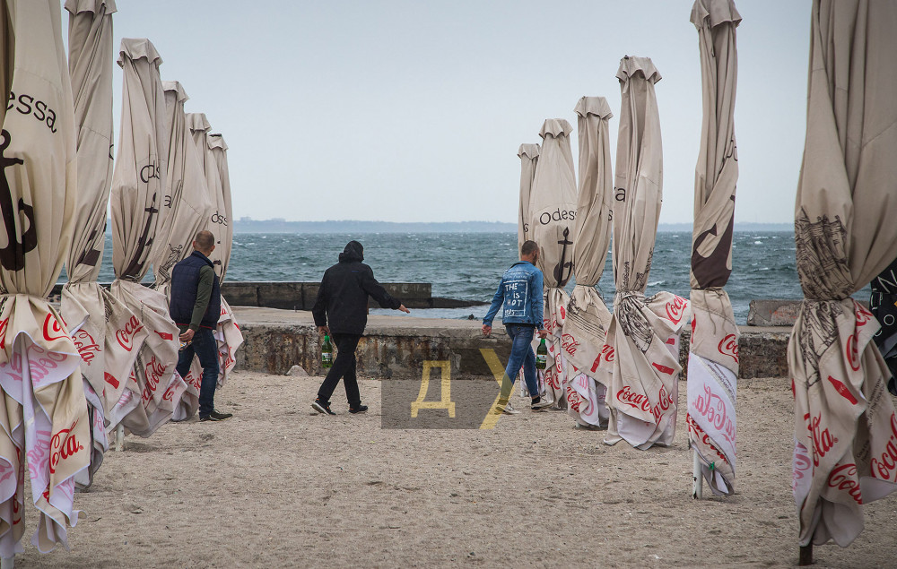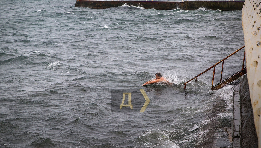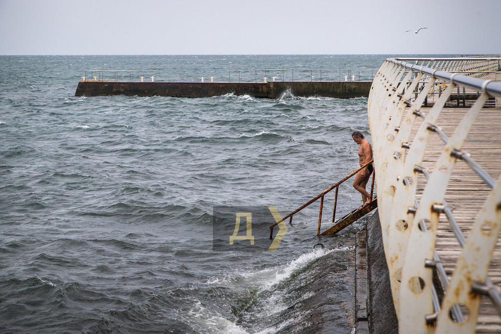 Одесситы кутаются в зимние куртки и шапки. Парки, улицы и пляжи непривычно пустынны. На Ланжероне штормовой ветер ломает зонтики и мешает делать селфи. За все время удалось встретить только одного человека, рискнувшего окунуться в неприветливое море. Впрочем, Александр, так зовут мужчину, признался, что купается круглый год и сегодняшняя погода — отличная.