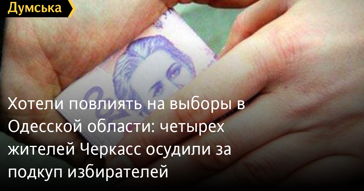 Приднепровский райсуд Черкасс признал виновными четырех граждан в подкупе избирателей (ч.4 ст. 160 УК). Они пытались повлиять на результаты выборов народных депутатов в городе Белгород-Днестровский Одесской области.