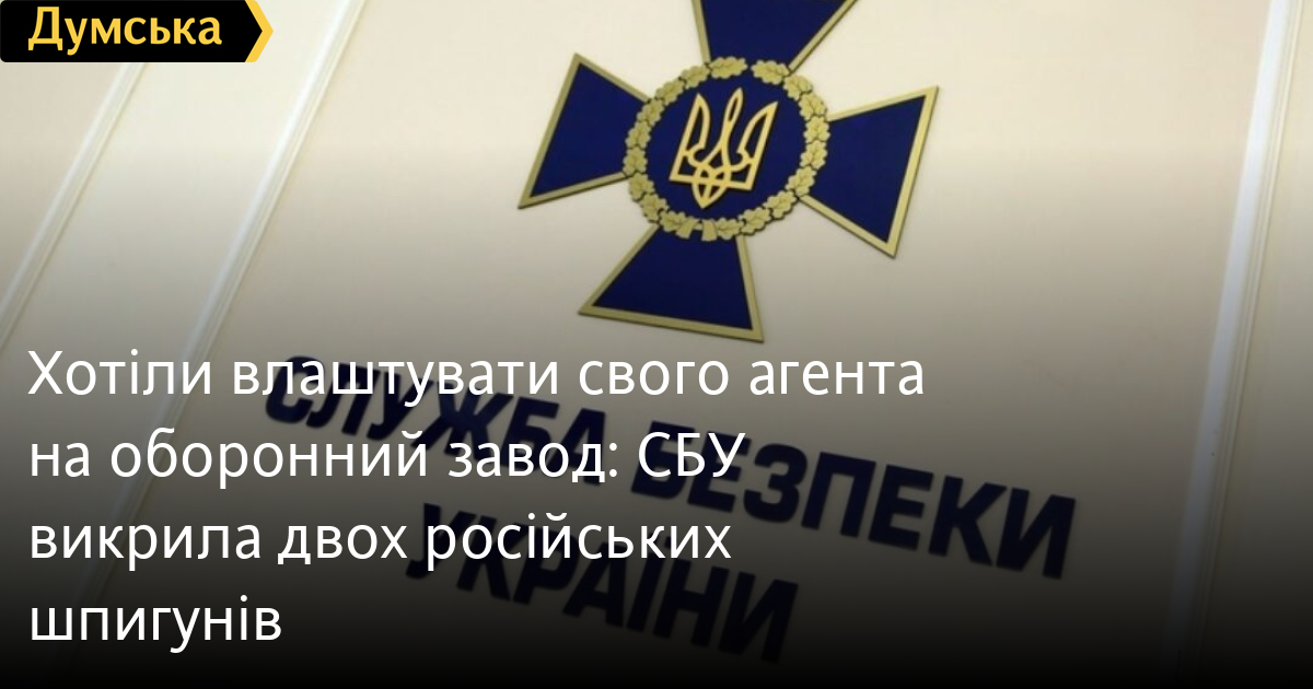 Двох російських шпигунів, які хотіли влаштувати свого агента на оборонний завод у Києві, розкрила Служба безпеки України.