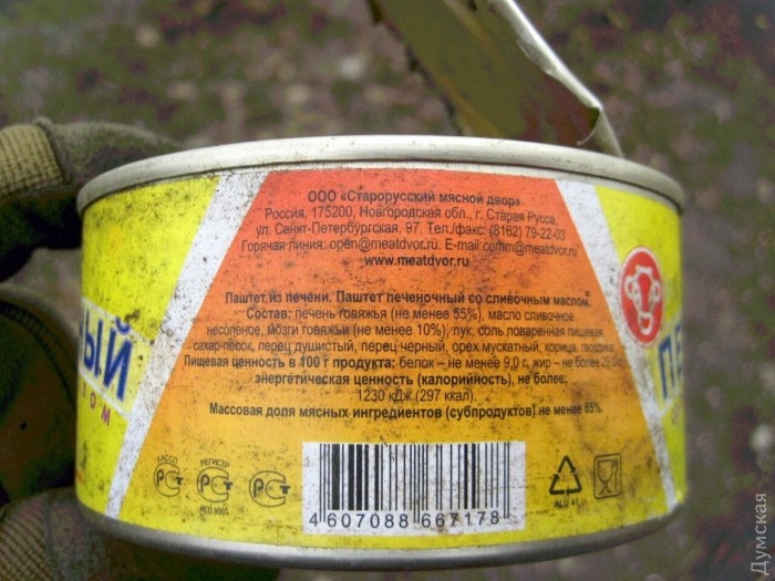 Иногда сепаратисты подрываются на собственных минных полях. В таких случаях наши разведчики находят не только мины, но и снаряжение и свежие консервы российского производства.