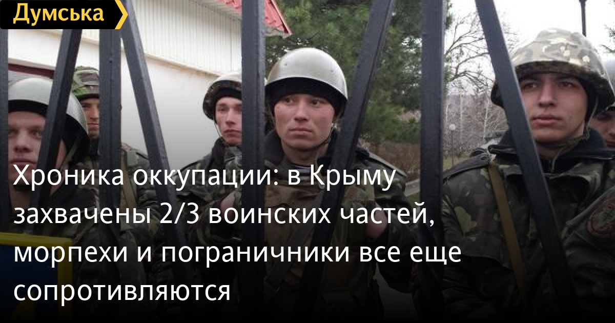 По непроверенной информации, захвачены уже 2/3 воинских частей ВСУ. Продолжает сопротивляться батальон морской пехоты в Феодосии, а также бригада береговой обороны в поселке Перевального. Отказываются сдаться курсанты Академии ВМС в Севастополе.