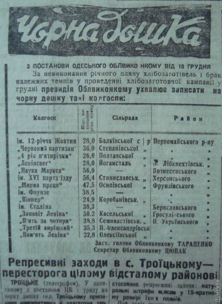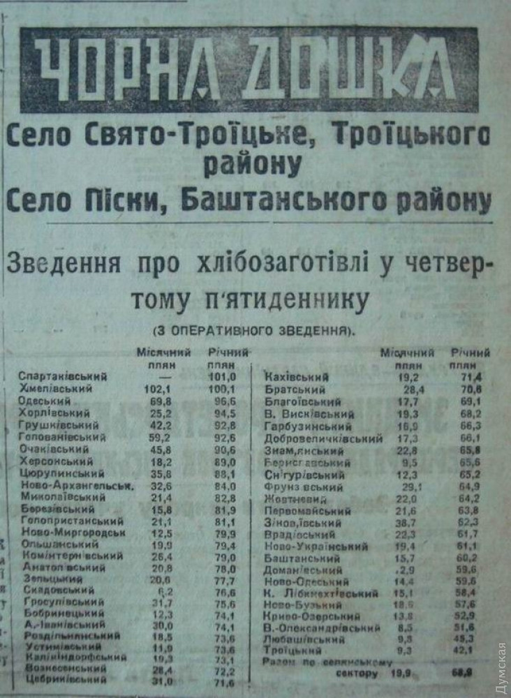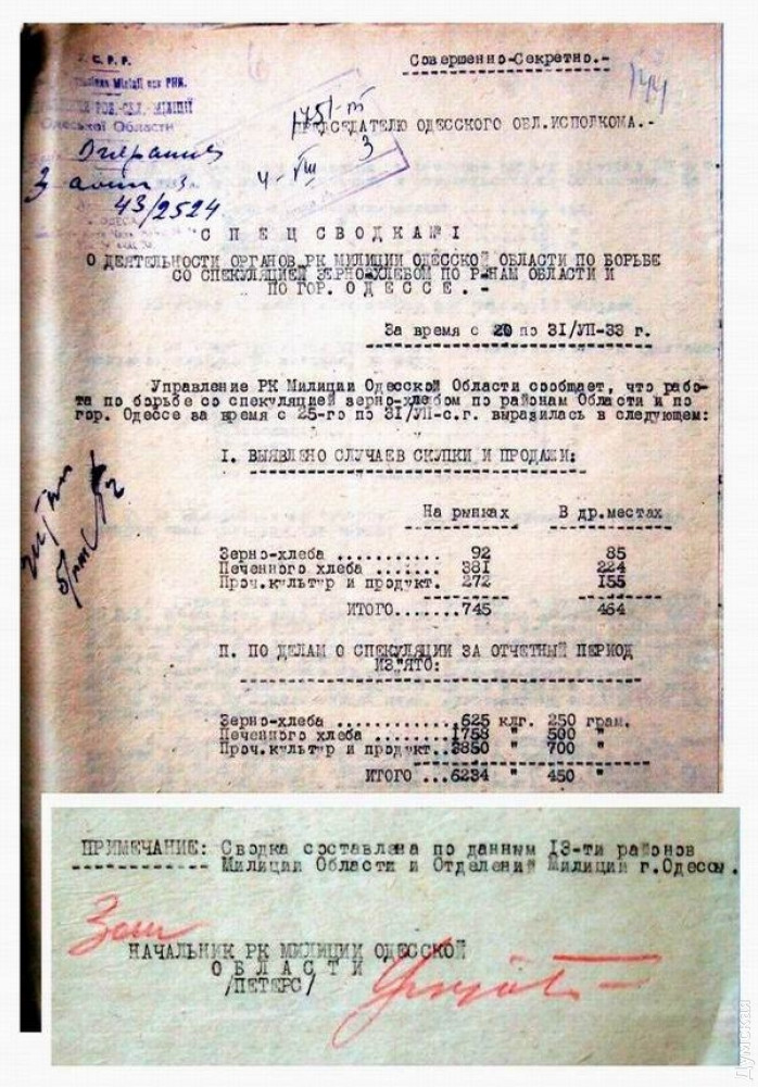 - что торговля указанными видами хлеба может быть разрешена колхозникам и единоличникам лишь после полного выполнения плана хлебозаготовок Одесской областью.